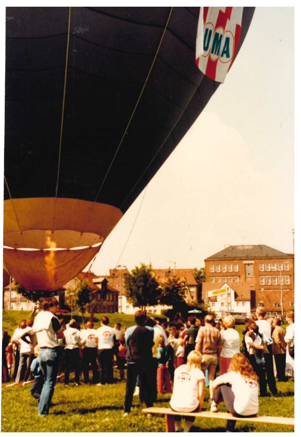 | Beschreibung | Menschenmenge auf Pegnitzwiesen vor Heißluftballon 1984 | ||