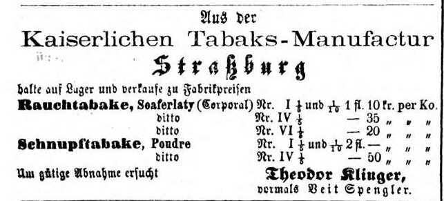 - (Herunterladen) 10 Rauch- und Schnupftabake, Klinger, Ftgbl. 28.02.1872.jpg . . 643 × 291 . . 51 KB . . Chrischmi . . 18:41, 1. Jul. 2021