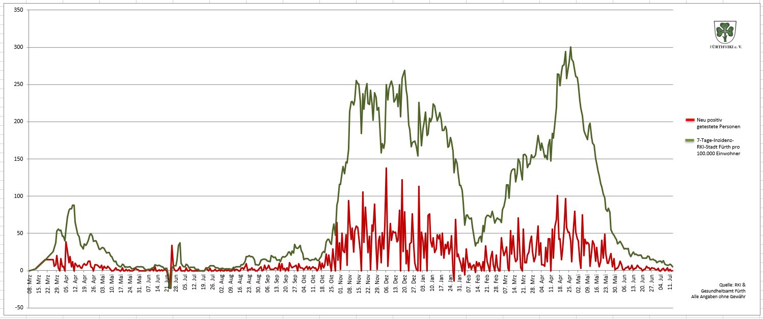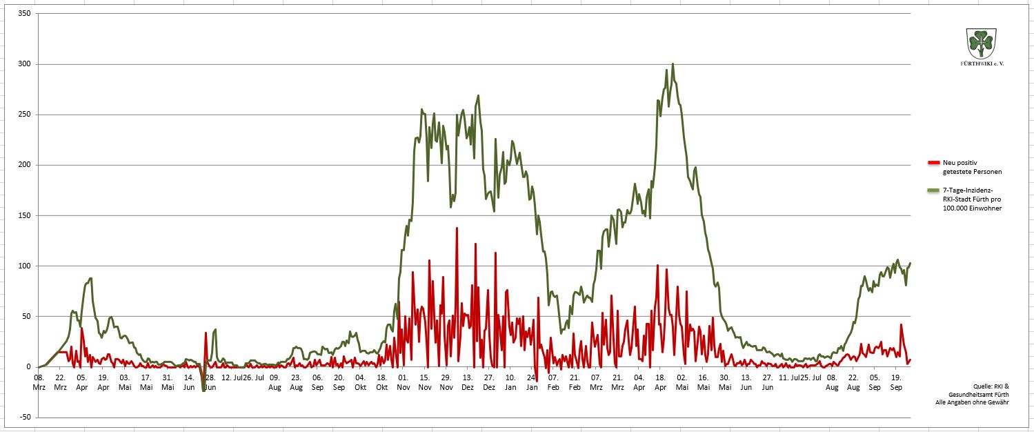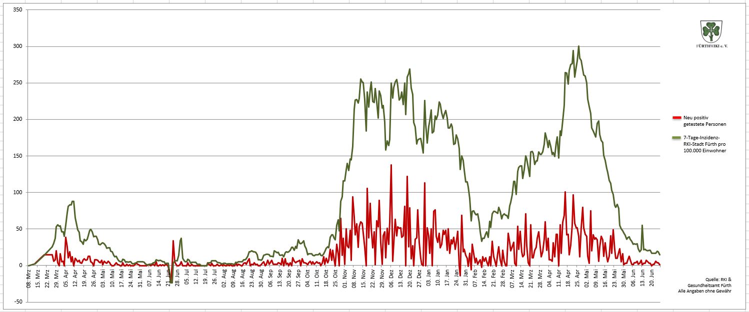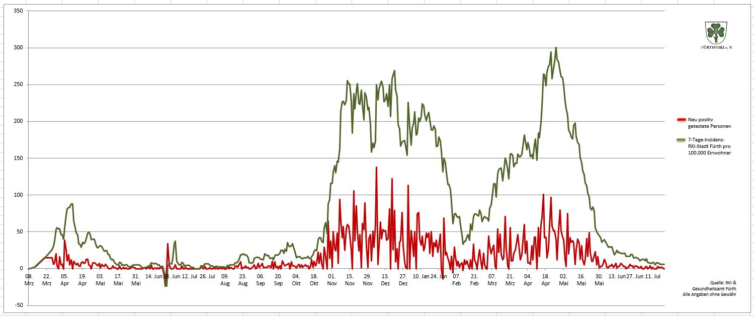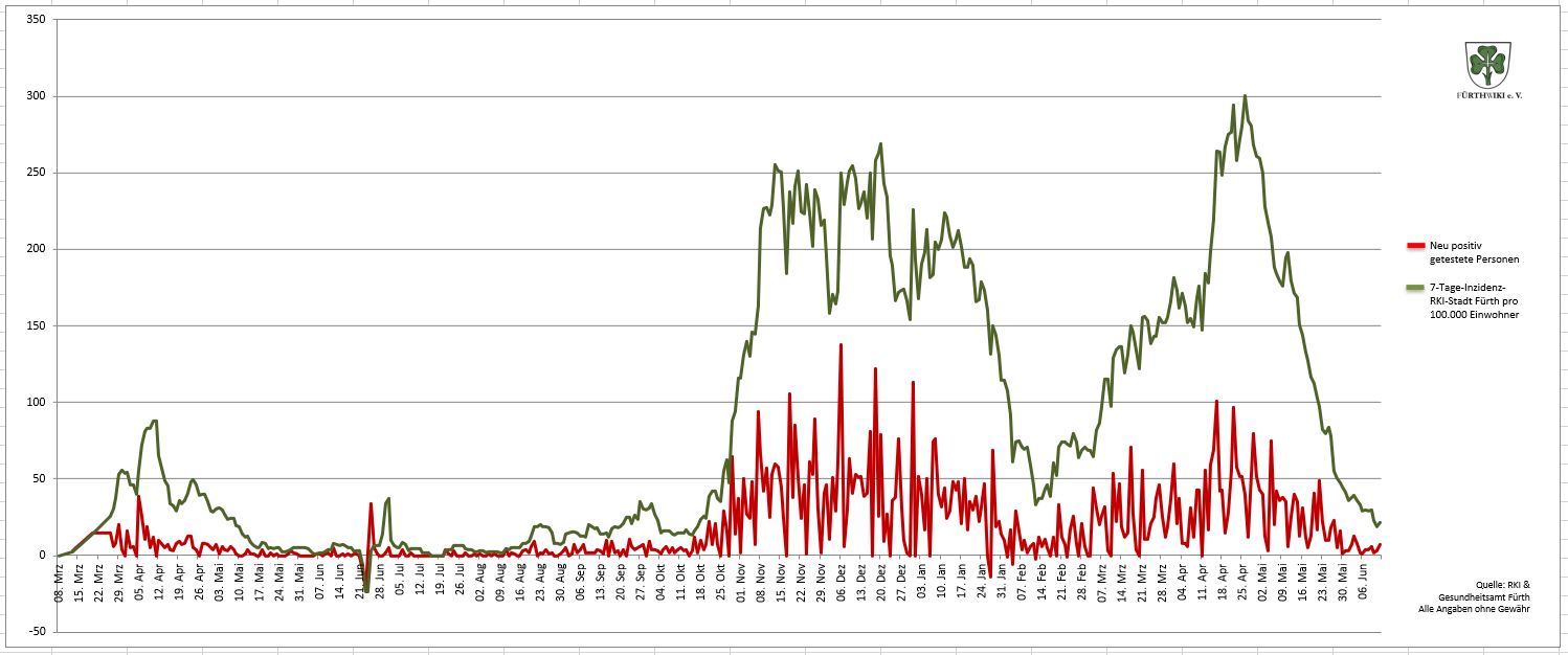 - Das Diagramm setzt sich aus den Daten des Gesundheitsamtes Fürth und den Zahlen des RKI zusammen.