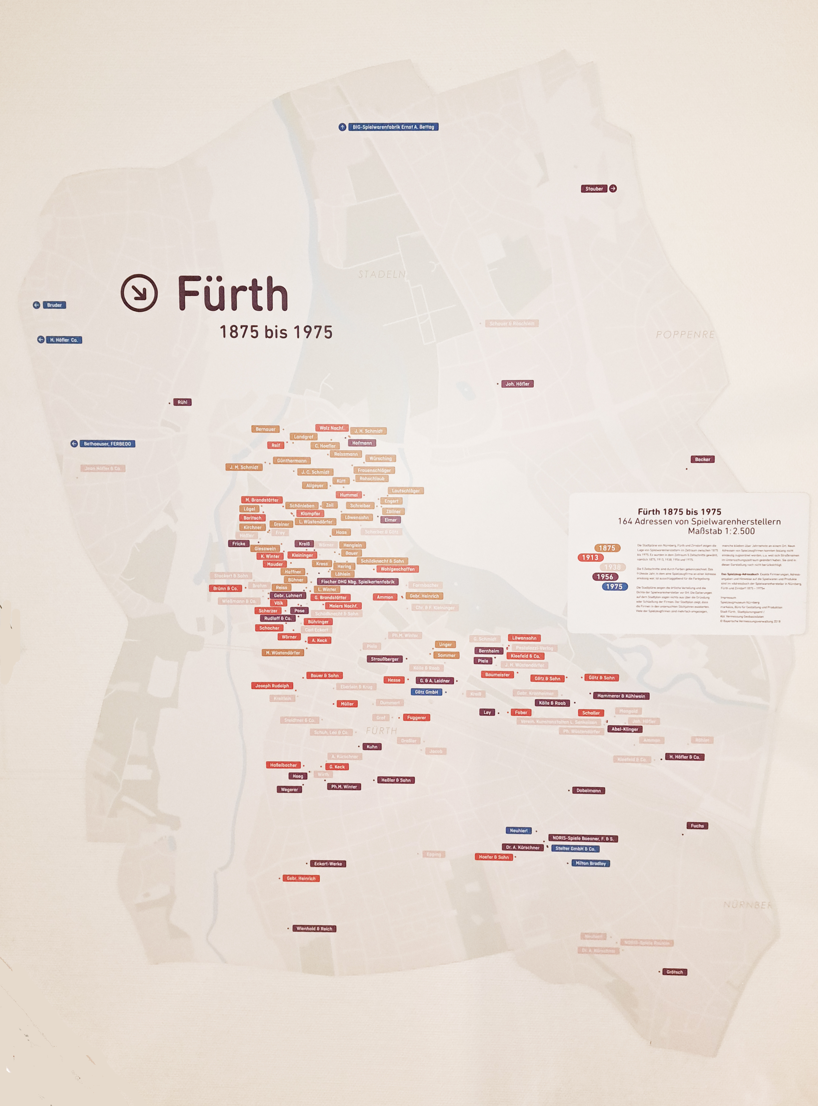 | 16:39, 19. Mär. 2025 | Standort Spielzeugindustrie Fürth.jpg (Datei) | 3,9 MB | {{Bild |Genre=Historische Dokumente; Pläne und Kartenwerke; Zeichnungen |Quellangaben=Spielzeugmeuseum Nürnberg |Urheber=Spielzeugmeuseum Nürnberg |Lizenz=copyright |Beschreibung=Standorte der Spielzeughersteller in Fürth, Plan in der Ausstellung des Spielzeugmsuems Nürnberg. Wiedergabe mit freundlicher Genehmigung der Museumsleitung, Karin Falkenberg) }} | 1 | |