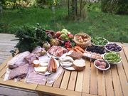 Demeter Schweine- und Rindfleisch, Wurstwaren, Brot, Käse, Kuchen.