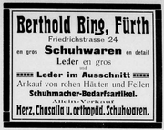 - ↑ siehe Adressbuch der Stadt Fürth von 1926/27, I. Teil, S. 16; ebenso Schuh- und Leder-Adreßbuch 1934, S. 67