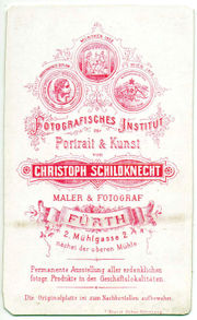 Christoph Schildknecht und sein Sohn Ernst Schildknecht erhielten am 15. November 1886 die höchste Verfügung der Königlichen Hoheit des Prinzregenten in Bayern, aufgrund ihrer "hervorragenden photografischen Kunstleistung". Sie durften sich ab sofort "königliche Hofphotographen" nennen.[11]