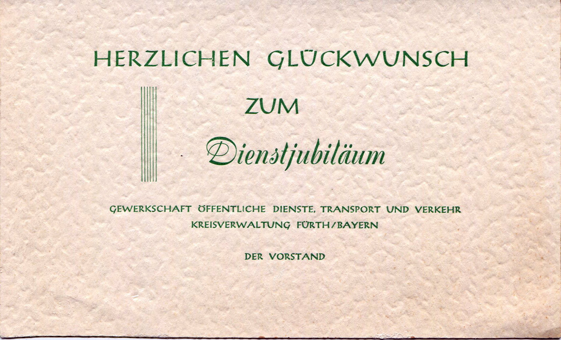 | Beschreibung | Dienstjubiläum für die 25-jährige Mitgliedschaft in der Gewerkschaft ÖTV Fürth, ca. 1960 | ||