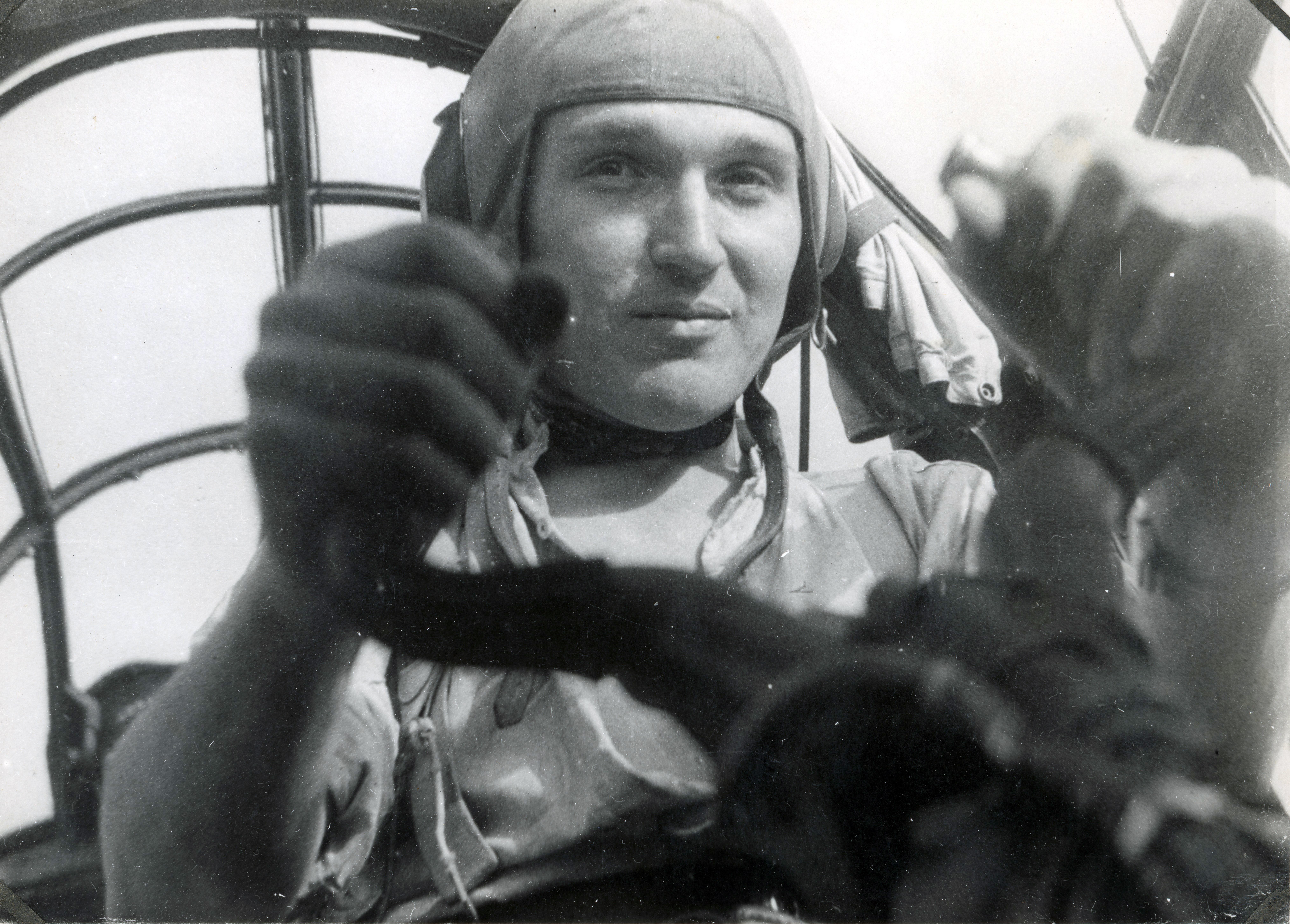 | Beschreibung | Pilot Hans Hautsch am Steuer im Flugzeug, ca. 1941 | ||