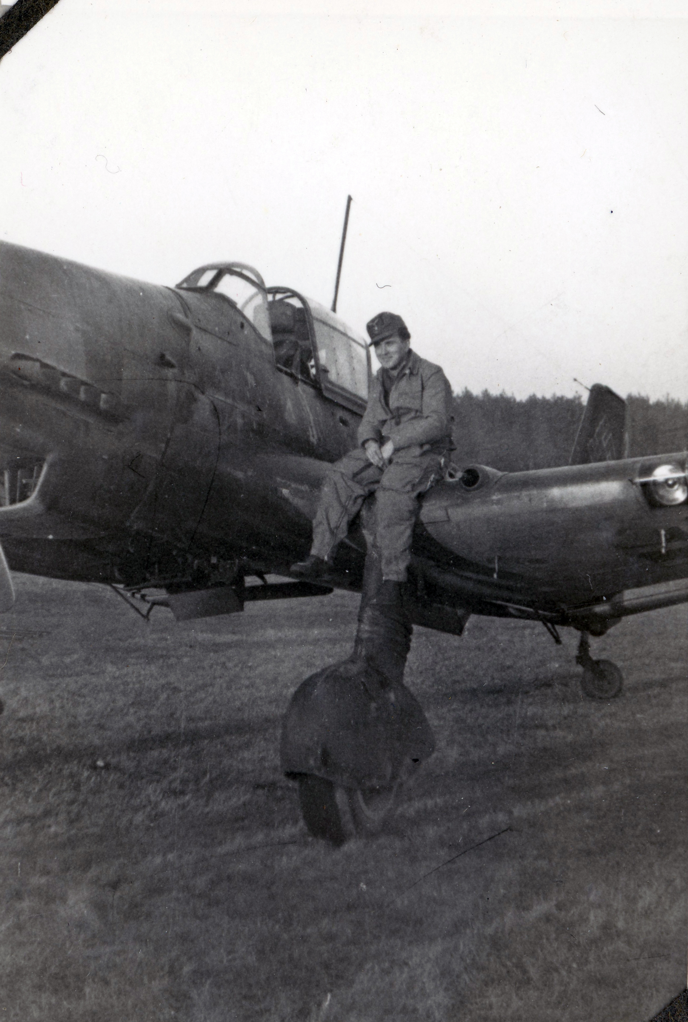 | Beschreibung | Pilot Hans Hautsch, hier mit dem Stuka Ju 87, die er am 9. Mai 1945 von Budweis in Tschechien nach Fürth-Atzenhof gegen 17 Uhr flog | ||