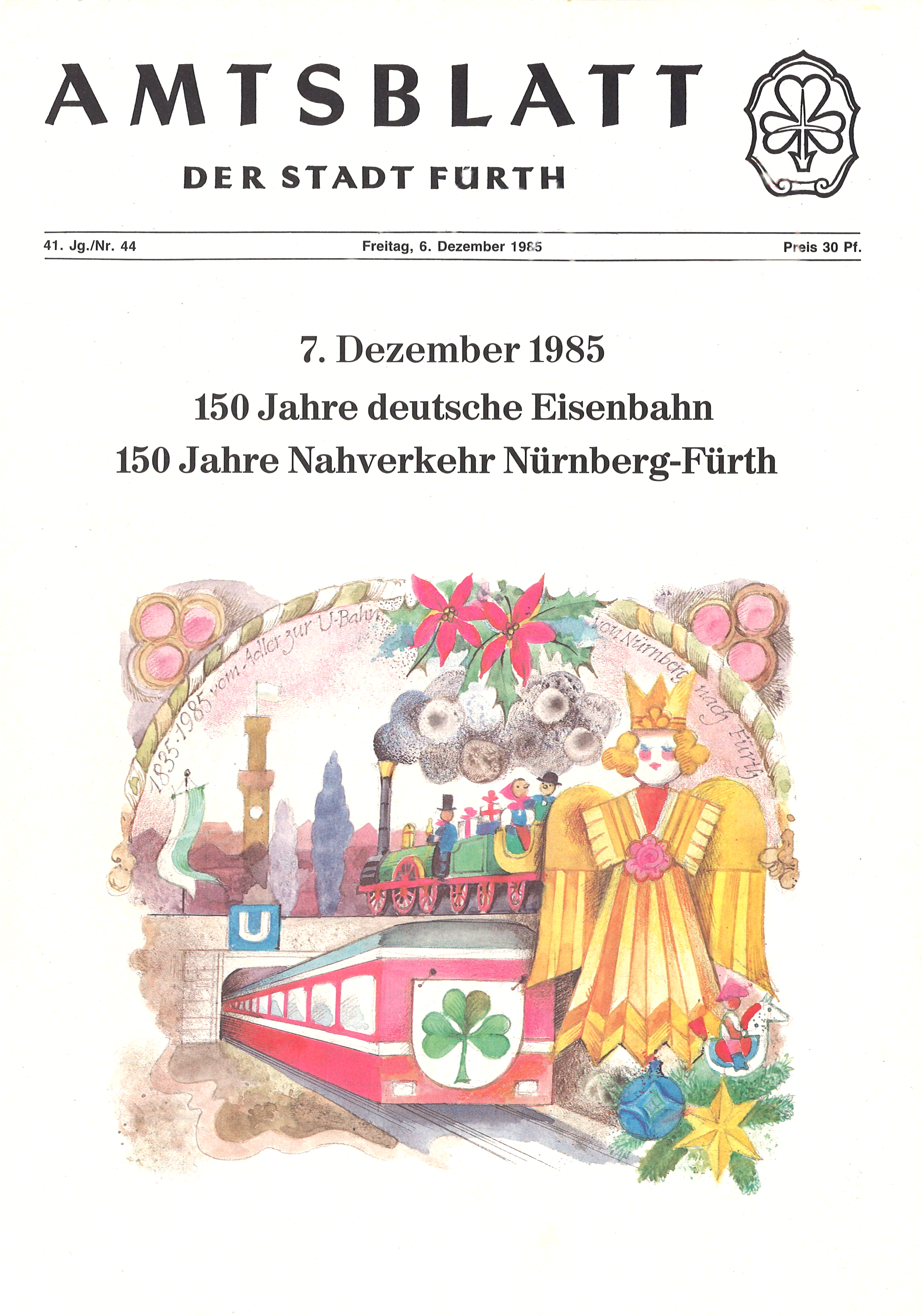 | Beschreibung | Amtsblatt der Stadt Fürth zum Jubiläum 150 Jahre Deutsche Eisenbahn | ||