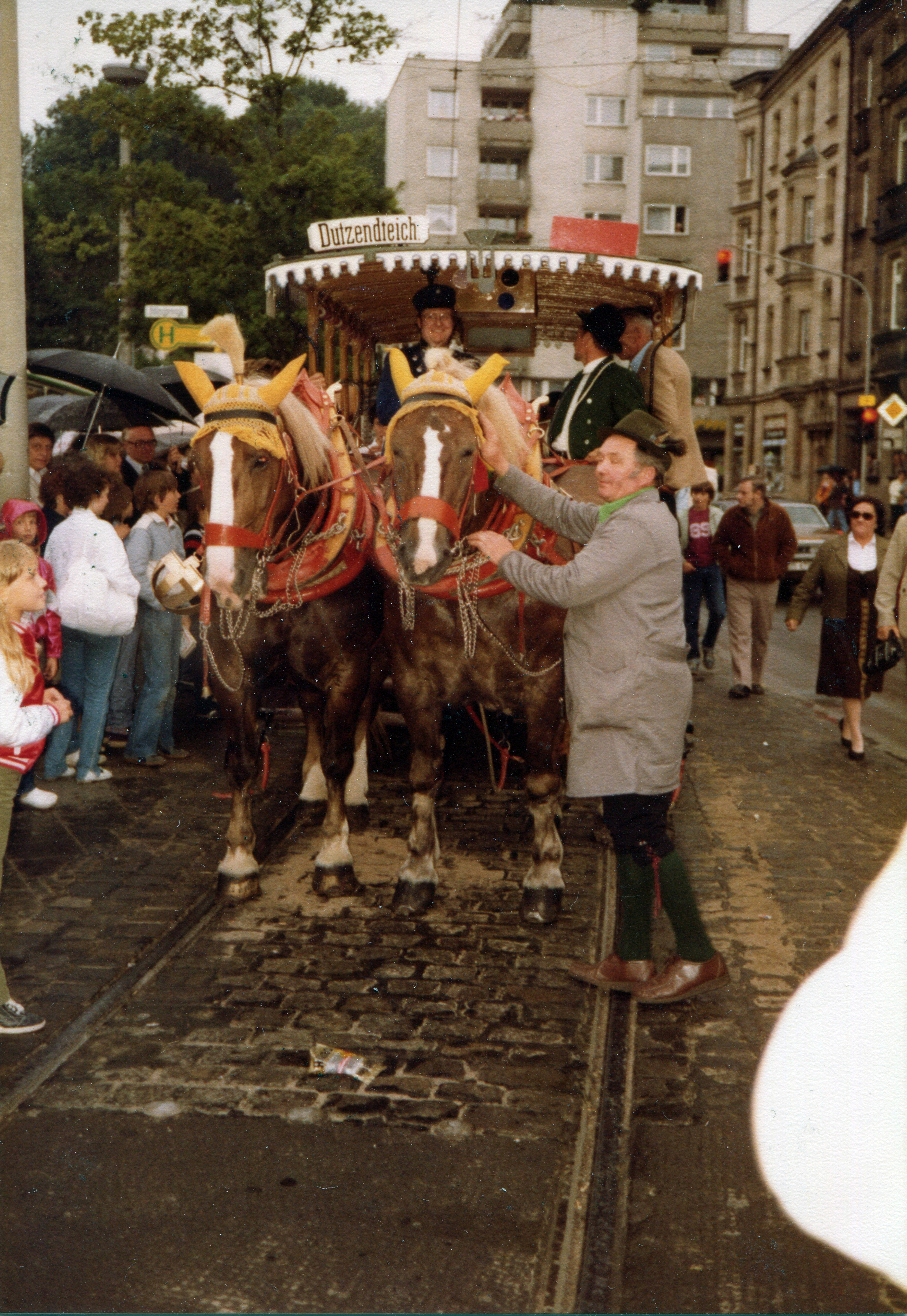 | Beschreibung | Historische Pferdebahn während der Veranstaltung auf der Billinganlage zur letzten Straßenbahnfahrt in Fürth, Juni 1981 | ||