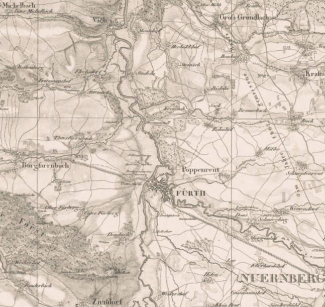 | Beschreibung | Ausschnitt aus dem Topographischen Atlas vom Königreiche Baiern diesseits des Rhein (Blatt 34: Nürnberg, 1:50 000), wohl 1832 (oder "vor 1832?") | ||