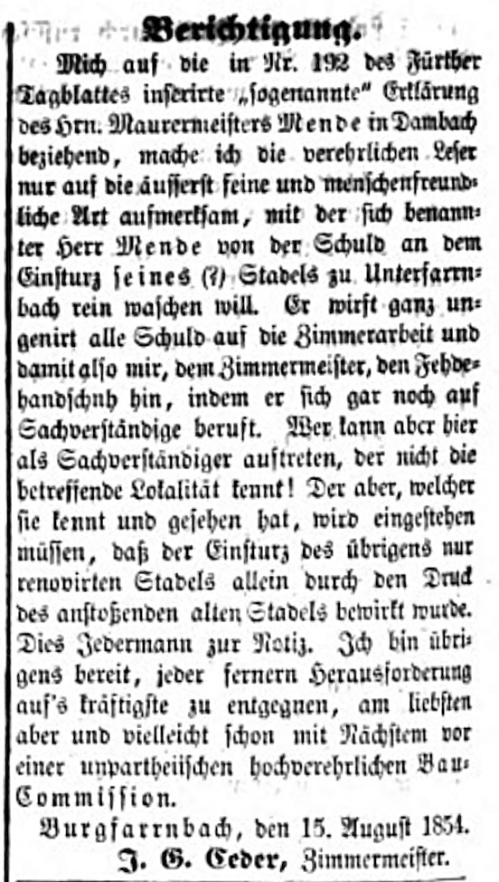 | Quellangaben | Fürther Tagblatt vom 17.08.1854 (Bayerische Staatsbibliothek) | ||