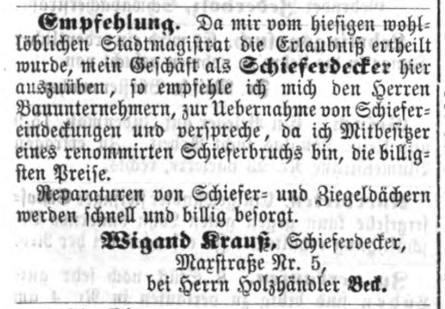 | Dateiinfo (Bild-Unterschrift und Info-Box, automatisch erstellt) | Geschäftsanzeige von Wigand Krauß, März 1866 Lizenz: NoC-NC 1.0 | ||