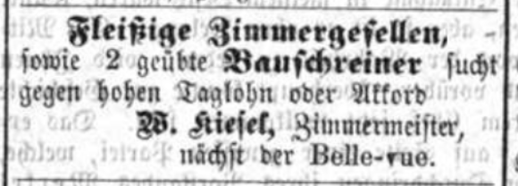 | Beschreibung | Anzeige von W. Kiesel, Juli 1873 | ||