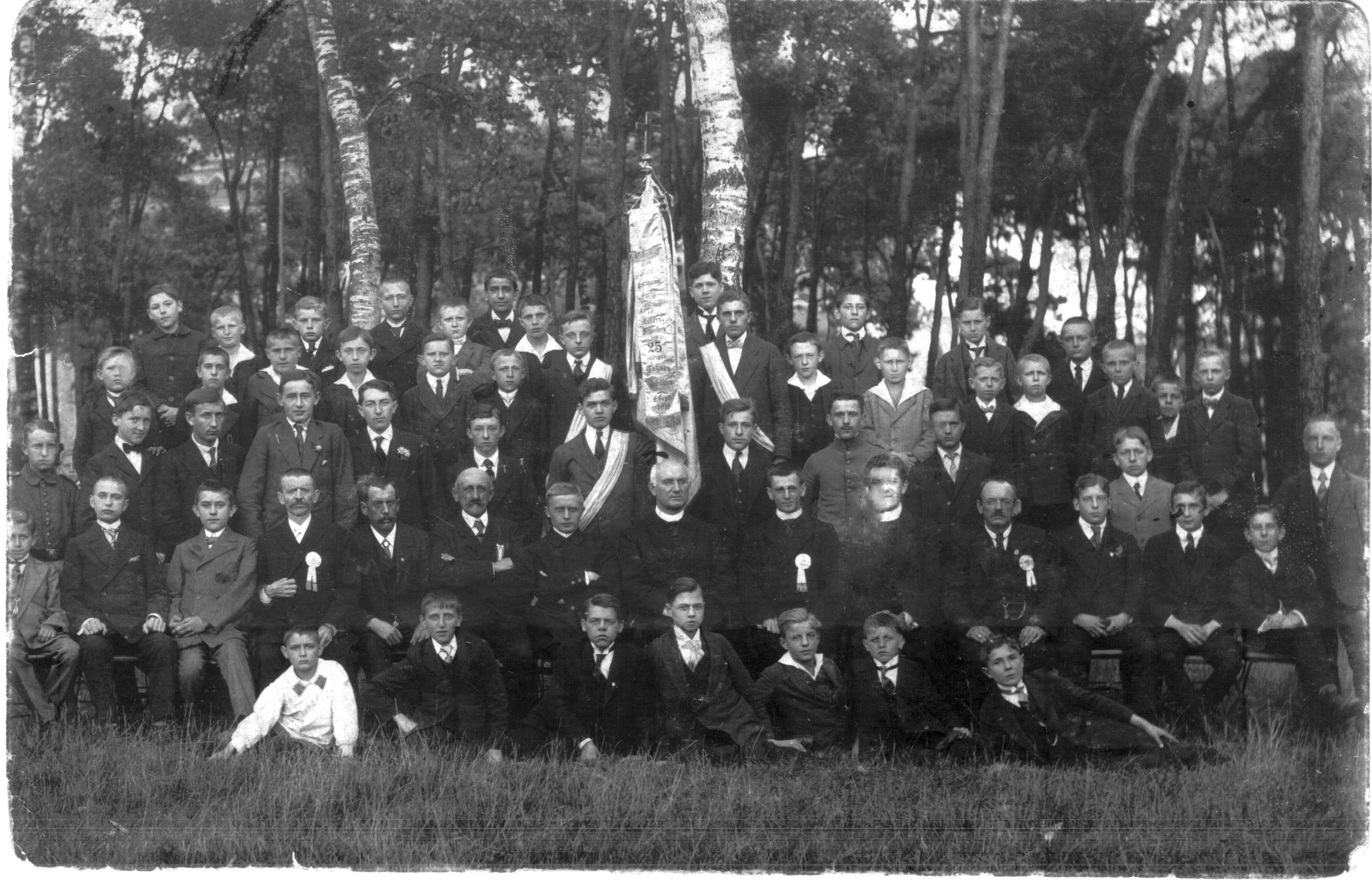 | Beschreibung | Der Katholische Lehrlingsverein Fürth, Vorläufer der DJK Fürth, beim 25-jährigen Fahnenjubiläum im Jahr 1918 | ||