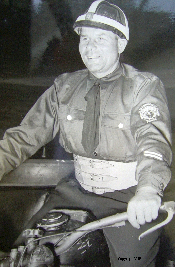 | Beschreibung | Streifenpolizist auf dem Motorrad im Jahr1951 | ||