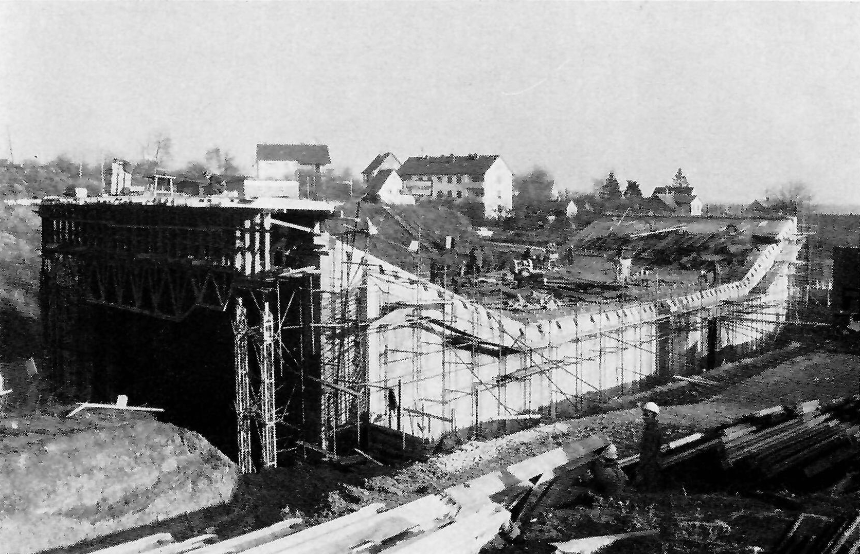 | Beschreibung | Die Kanalbrücke in Vach über die Herzogenauracher Straße im Bau (1968) | ||
