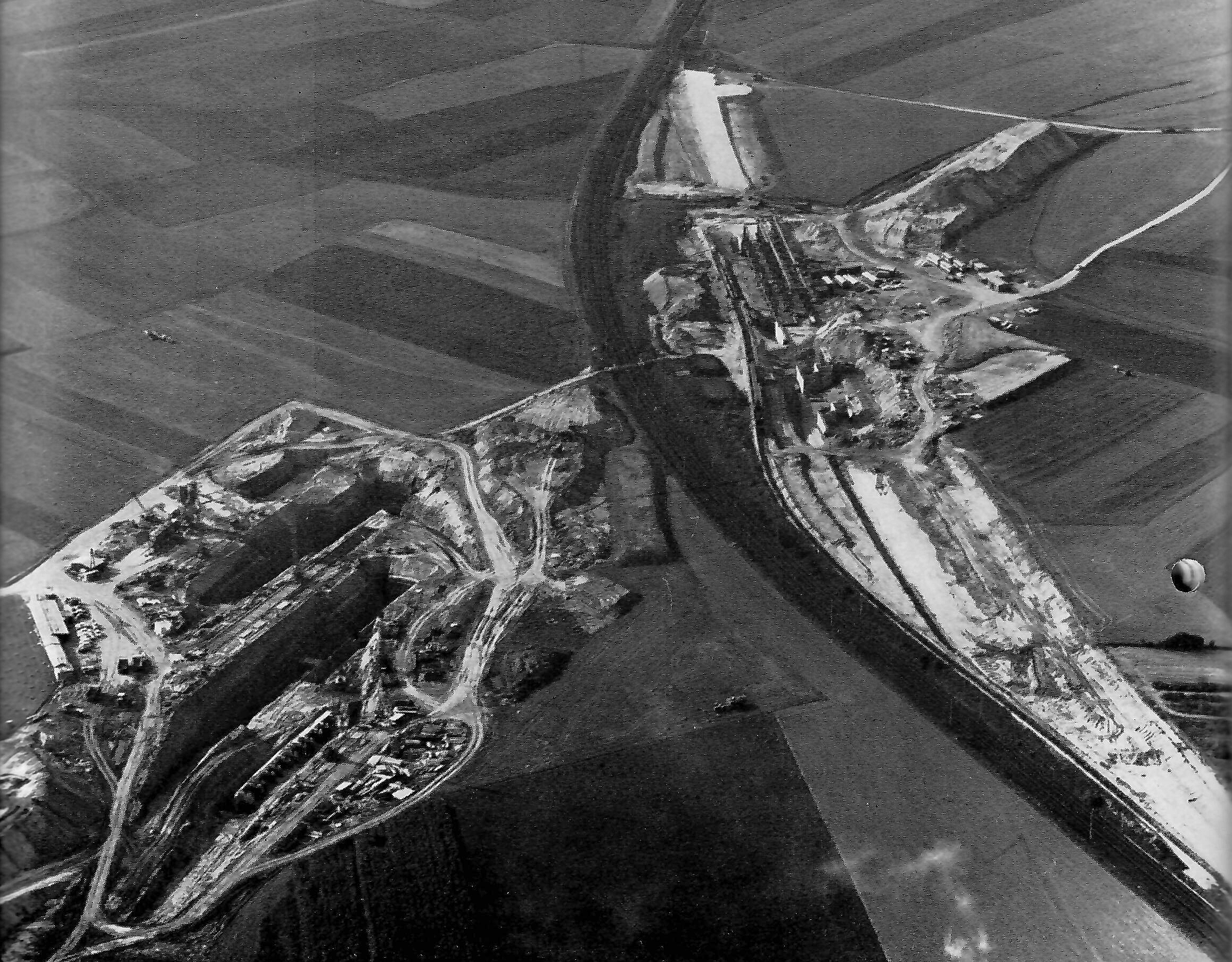 | Beschreibung | Die Brücke der Würzburger Bahnlinie (rechts oben) und der Südwesttangente über den Main-Donau-Kanal im Bau (1969) | ||
