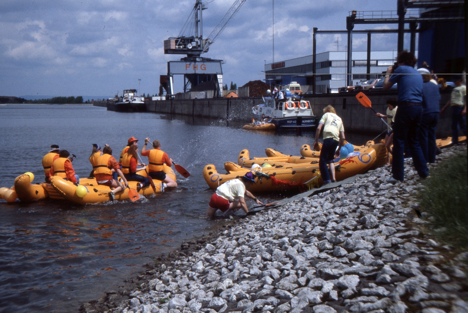| Beschreibung | Vor dem Schlauchbotrennen amerikanischer Soldaten auf dem Hafenfest, 1983 | ||