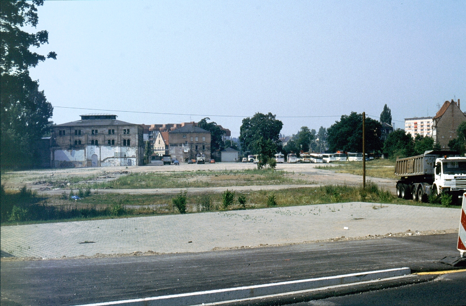 | Beschreibung | Bauplatz für die Polizeihauptwache an der Kapellenstraße hinter dem alten Schlachthof (1994) | ||