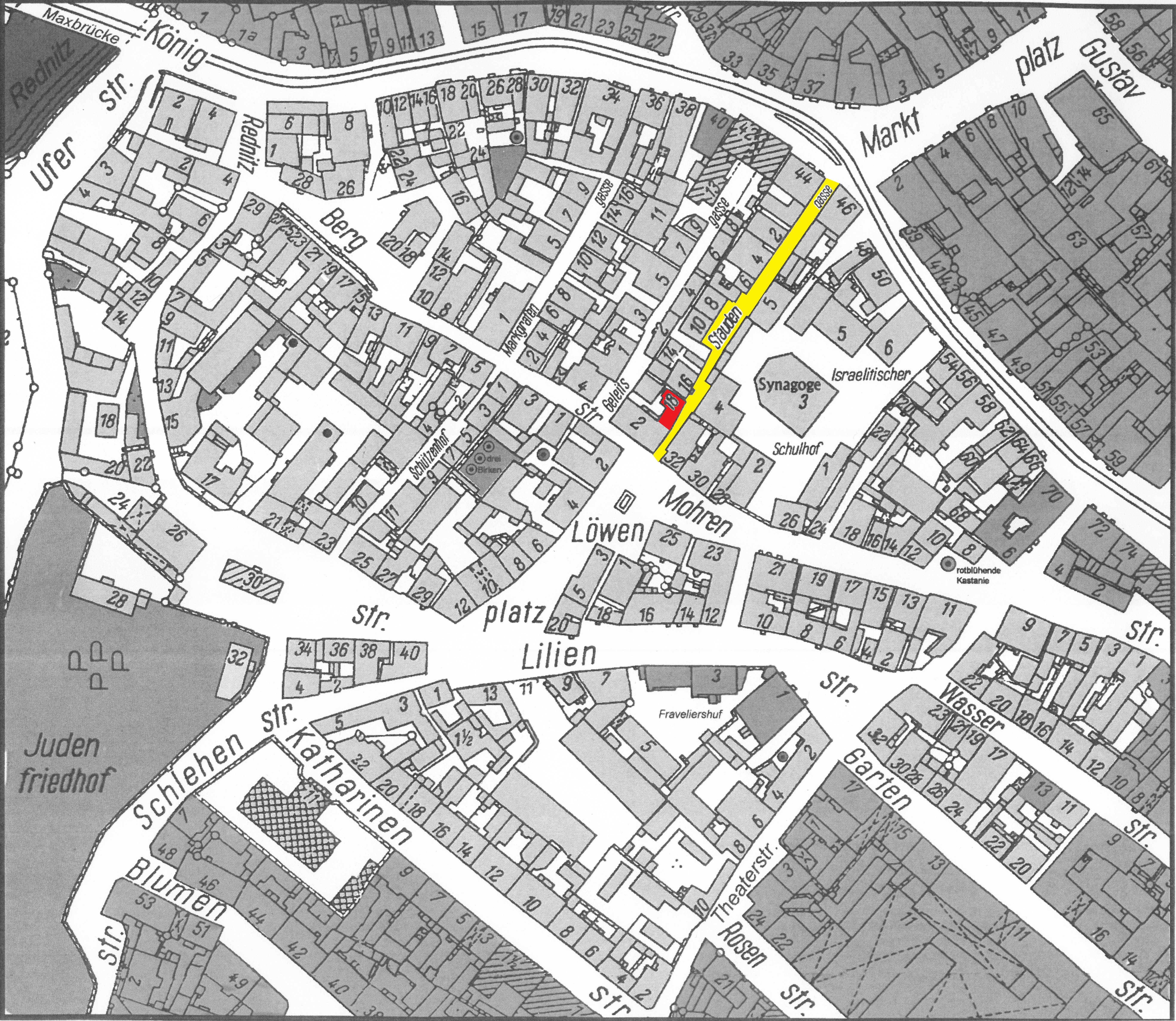 | Dateiinfo (Bild-Unterschrift und Info-Box, automatisch erstellt) | Gänsberg-Plan Staudengasse 18 rot markiert Urheber: Lothar Berthold<br>Lizenz: CC BY-SA 3.0 | ||