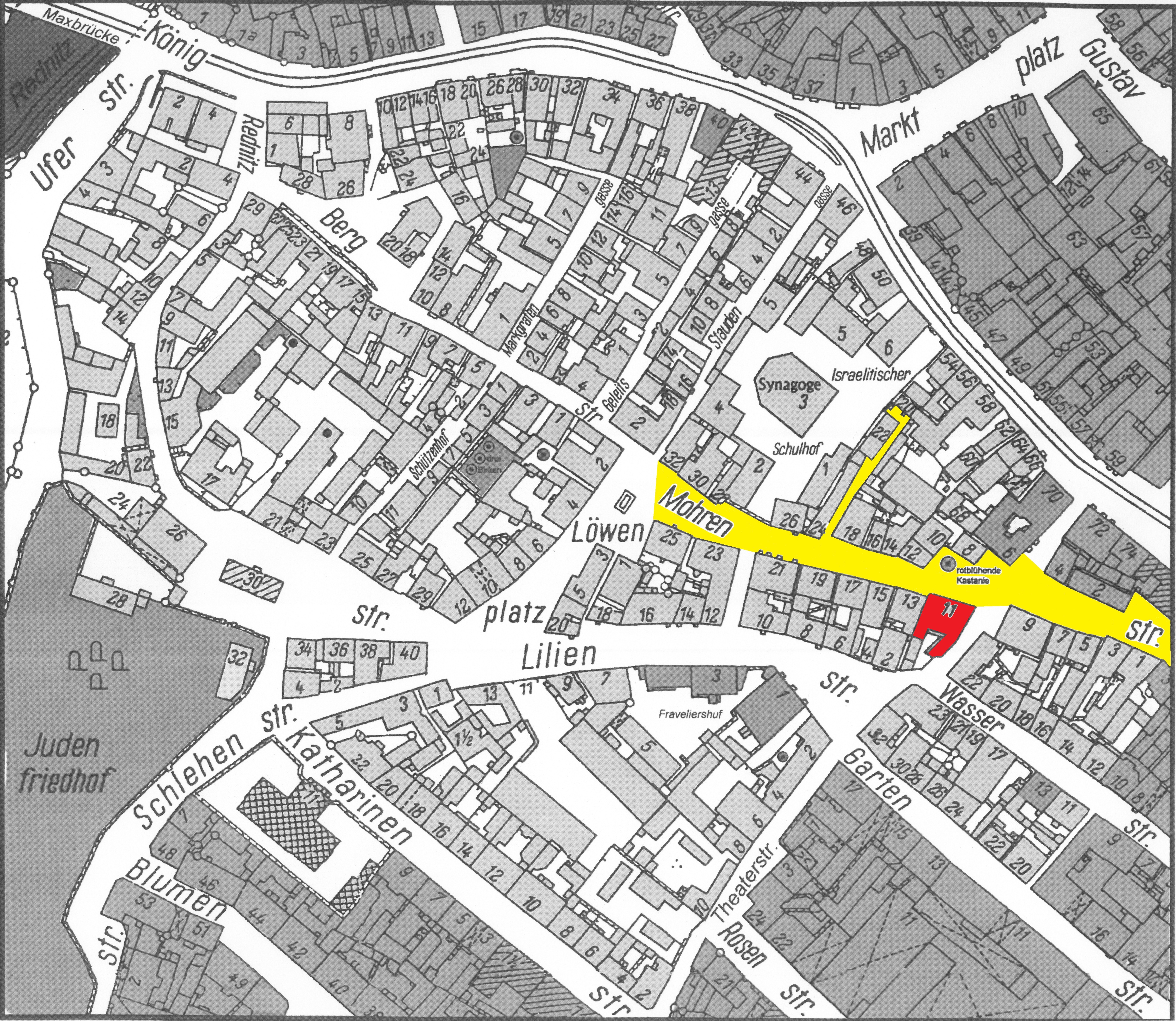 | Beschreibung | Gänsberg-Plan, Mohrenstraße 11 rot markiert | ||