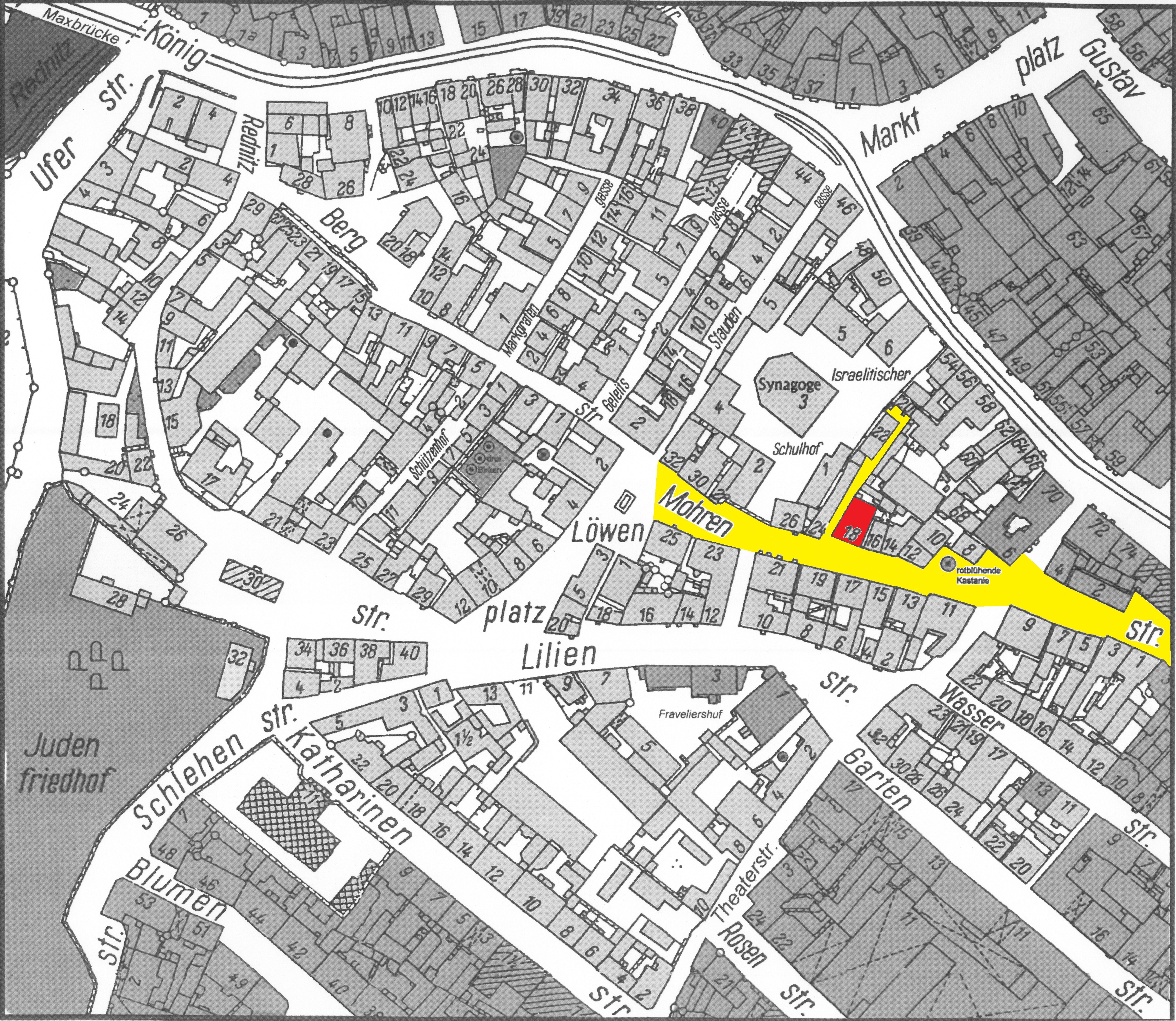 | Beschreibung | Gänsberg-Plan, Mohrenstraße 18 rot markiert | ||