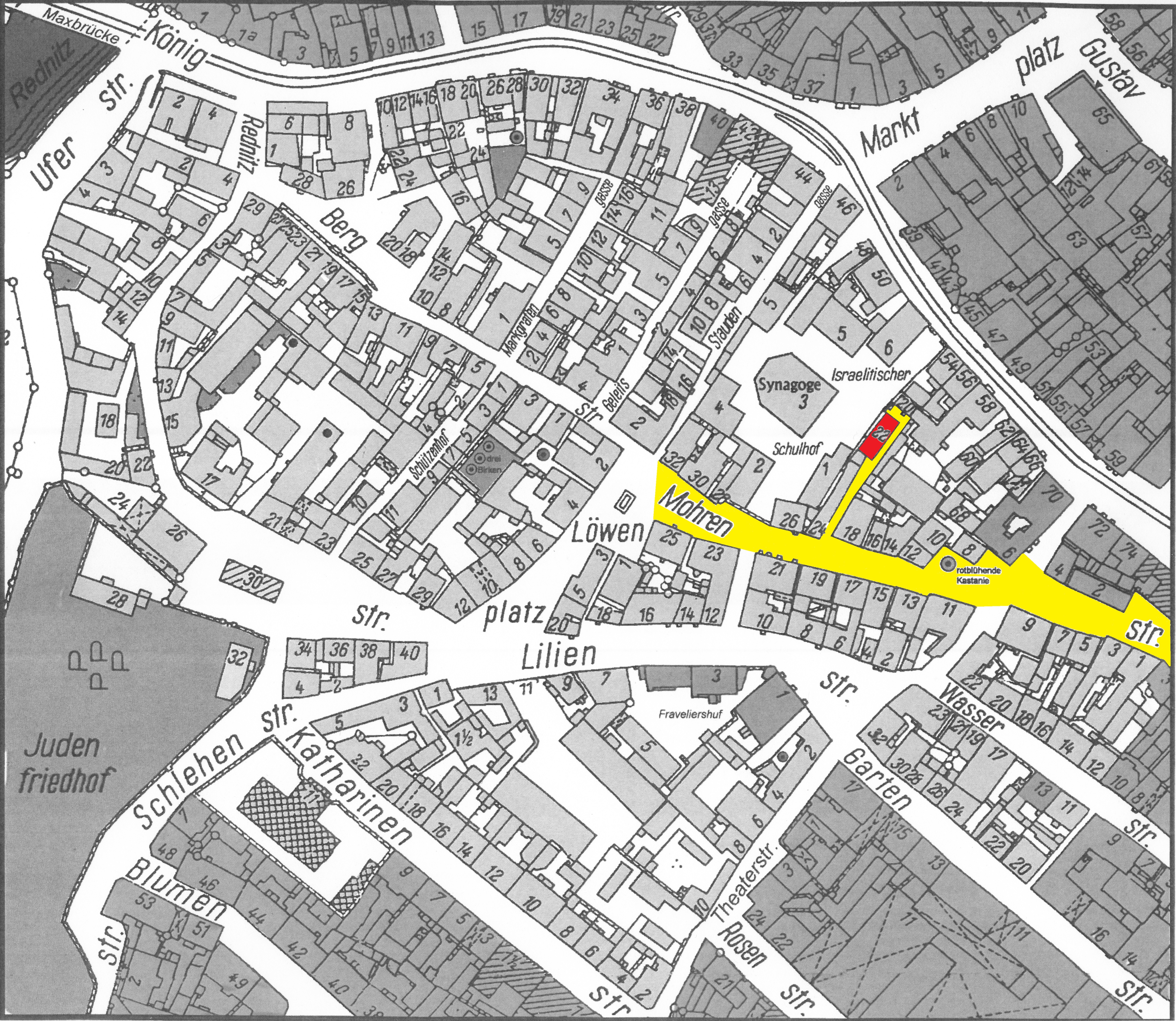 | Dateiinfo (Bild-Unterschrift und Info-Box, automatisch erstellt) | Gänsberg-Plan; Mohrenstraße 22 rot markiert Urheber: Lothar Berthold<br>Lizenz: CC BY-SA 3.0 | ||