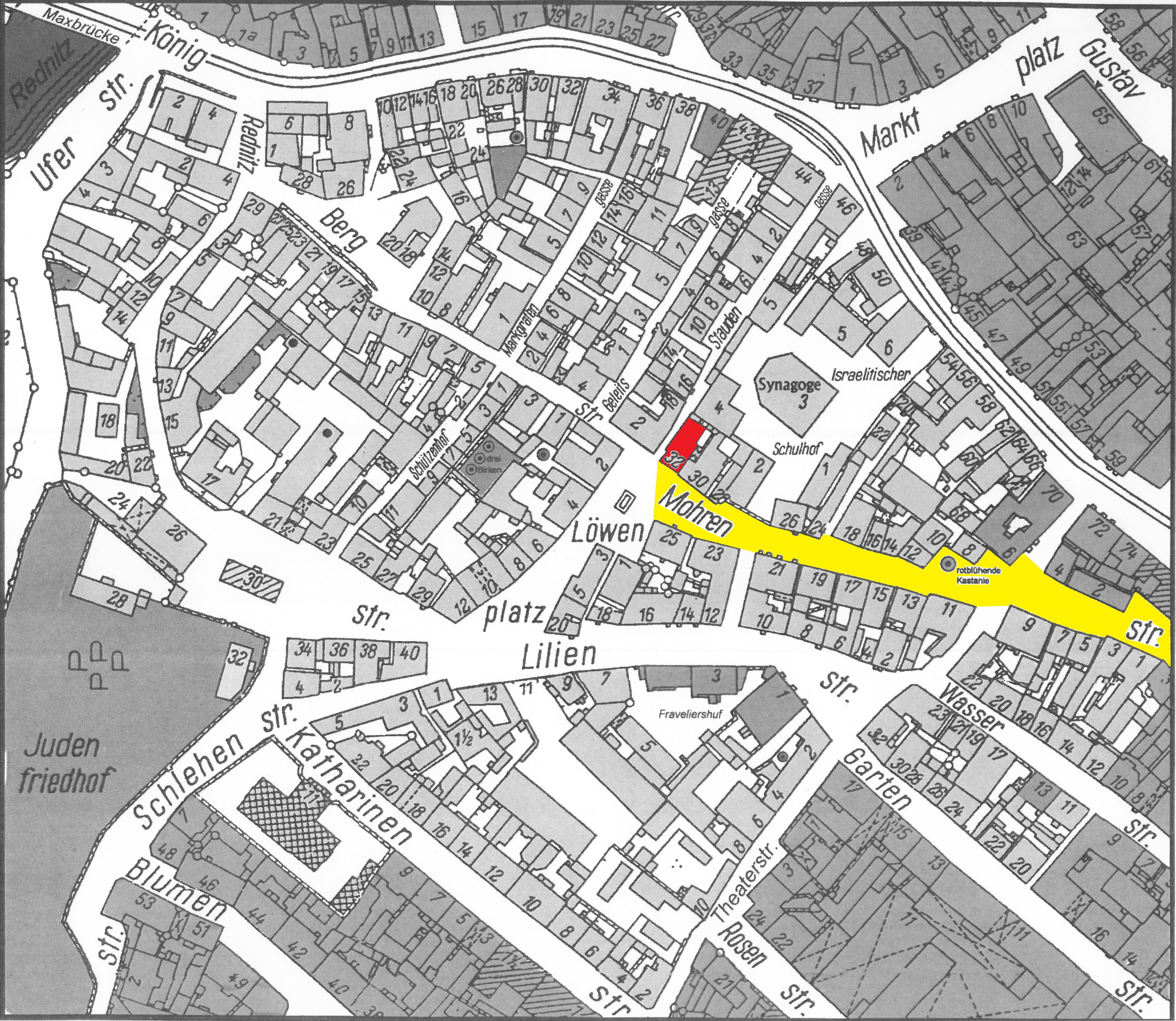 | Beschreibung | Gänsberg-Plan, Mohrenstraße 32 rot markiert | ||