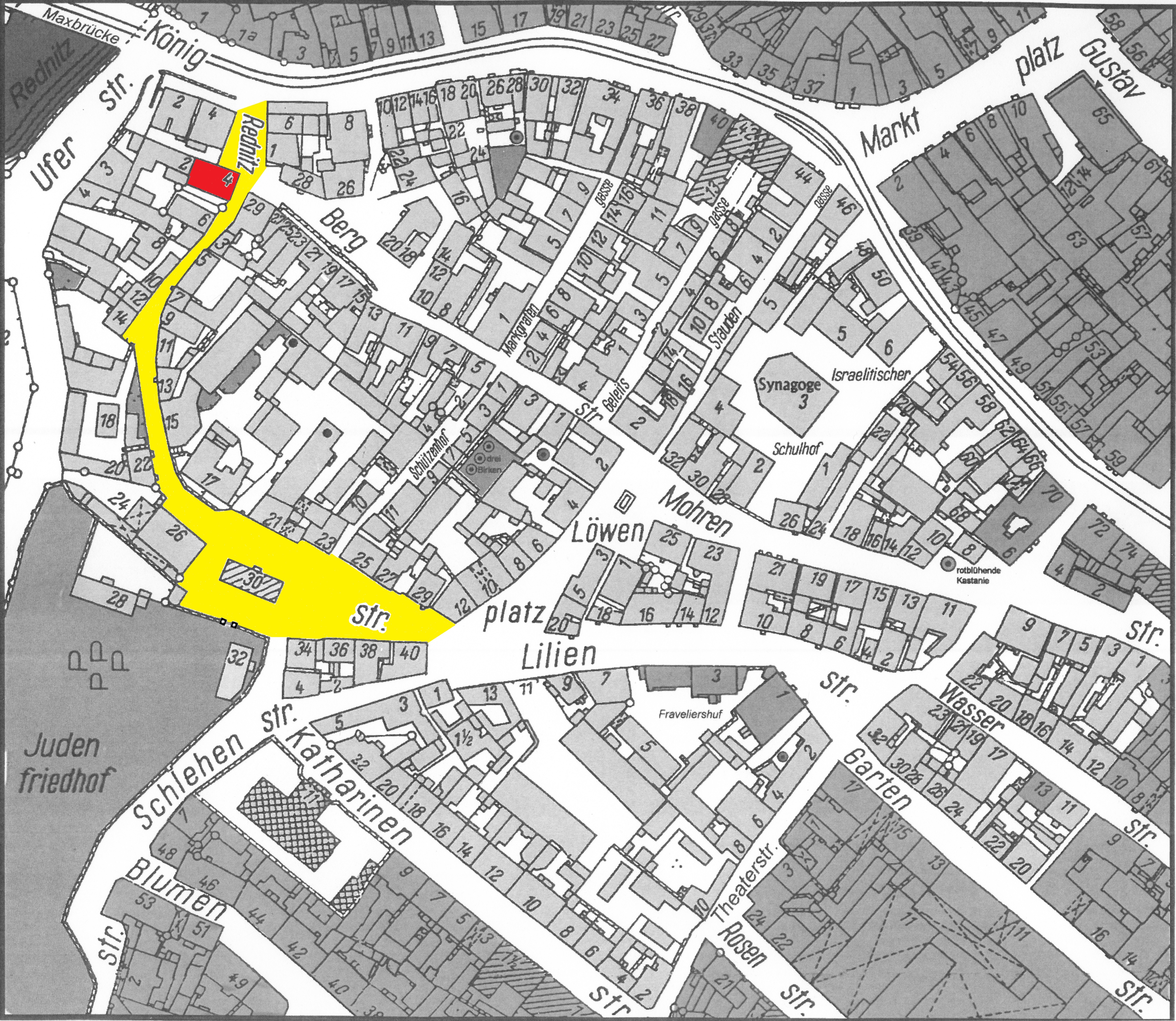 | Beschreibung | Gänsberg-Plan; Rednitzstraße 4 rot markiert | ||
