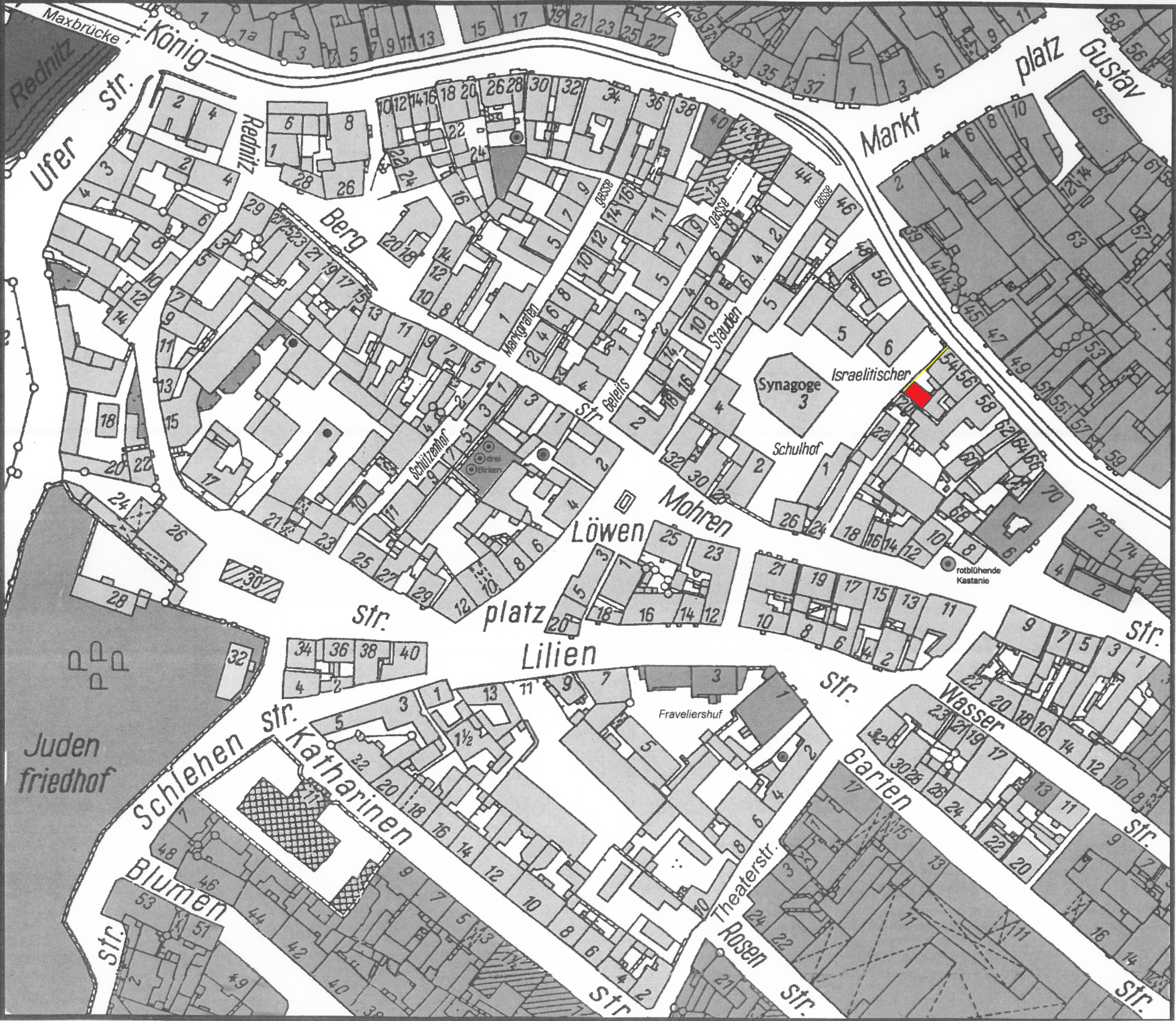 | Beschreibung | Gänsberg-Plan mit Königstraße 52 rot markiert | ||