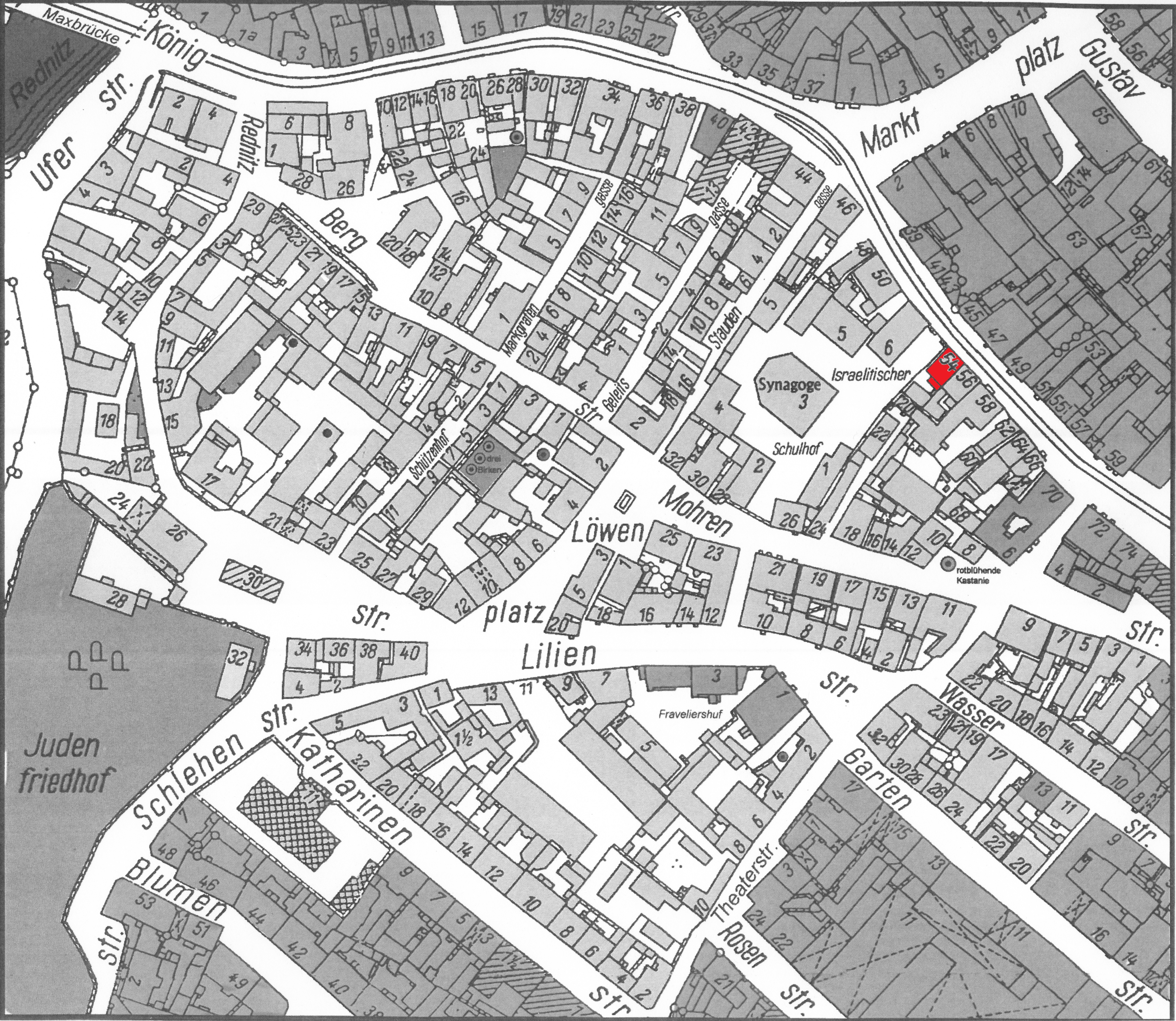 | Beschreibung | Gänsberg-Plan, Königstraße 54 rot markiert | ||
