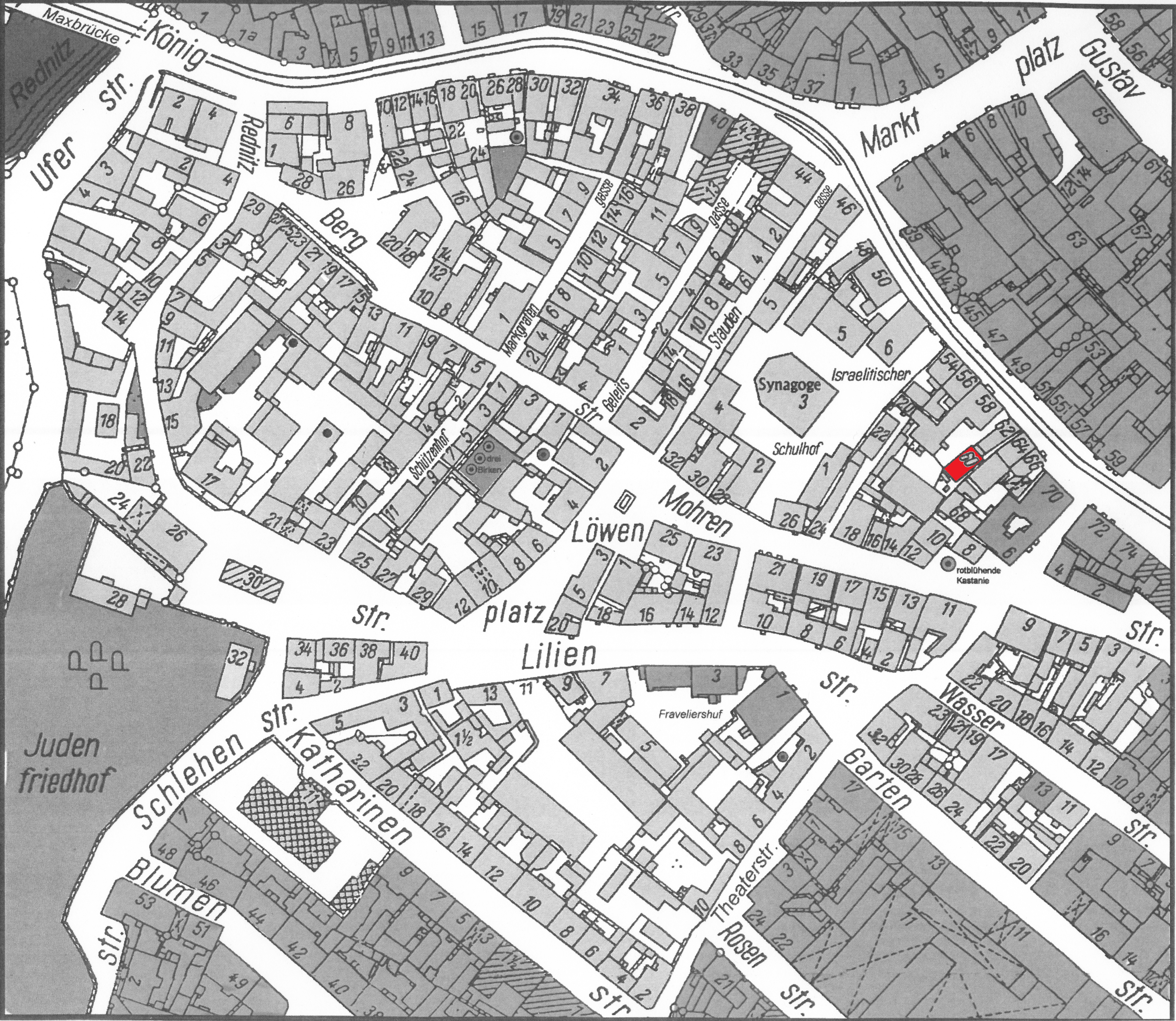 | Beschreibung | Gänsberg-Plan, Königstraße 60 rot markiert | ||