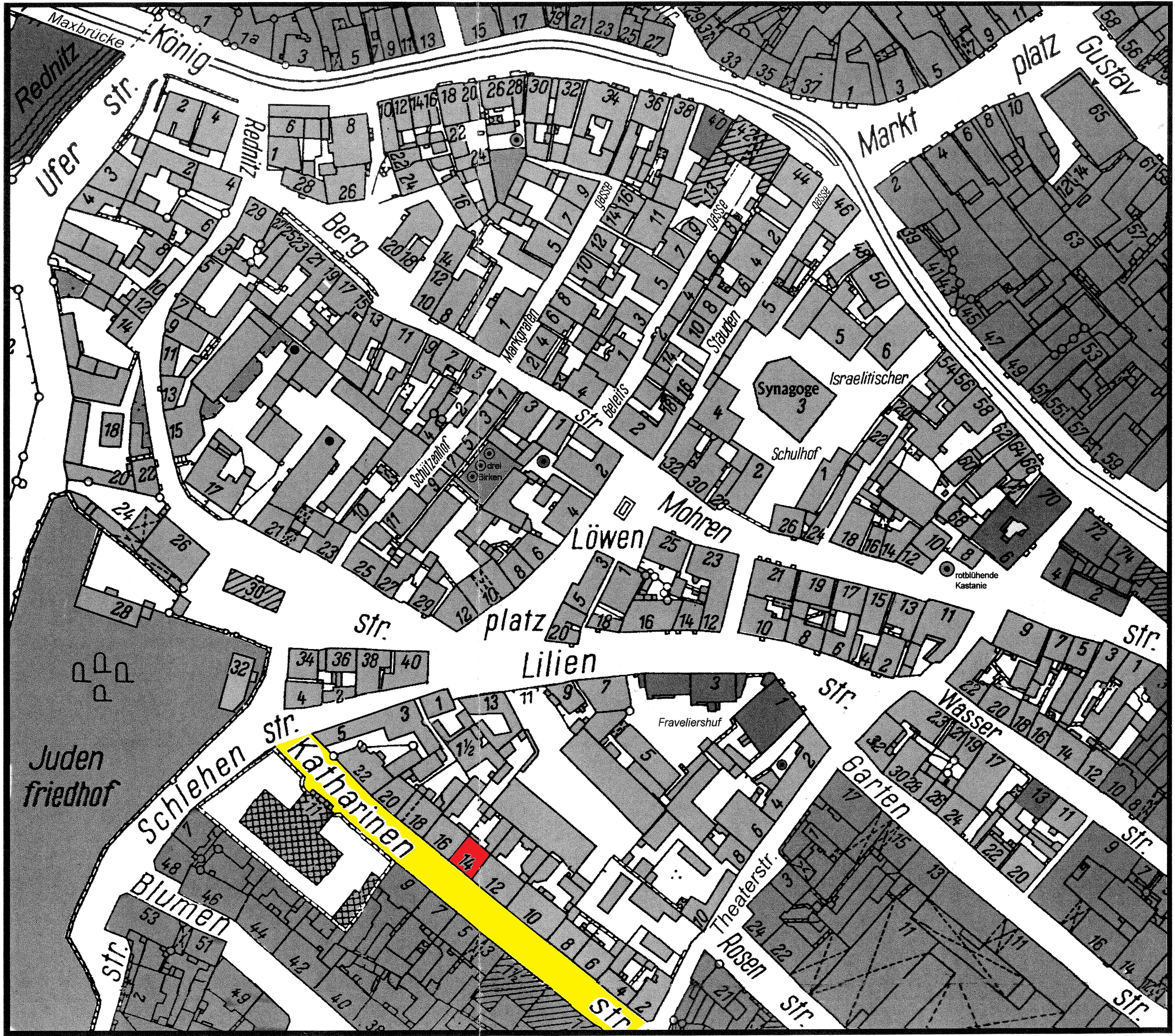 | Beschreibung | Gänsberg-Plan Katharinenstraße 14 rot markiert | ||