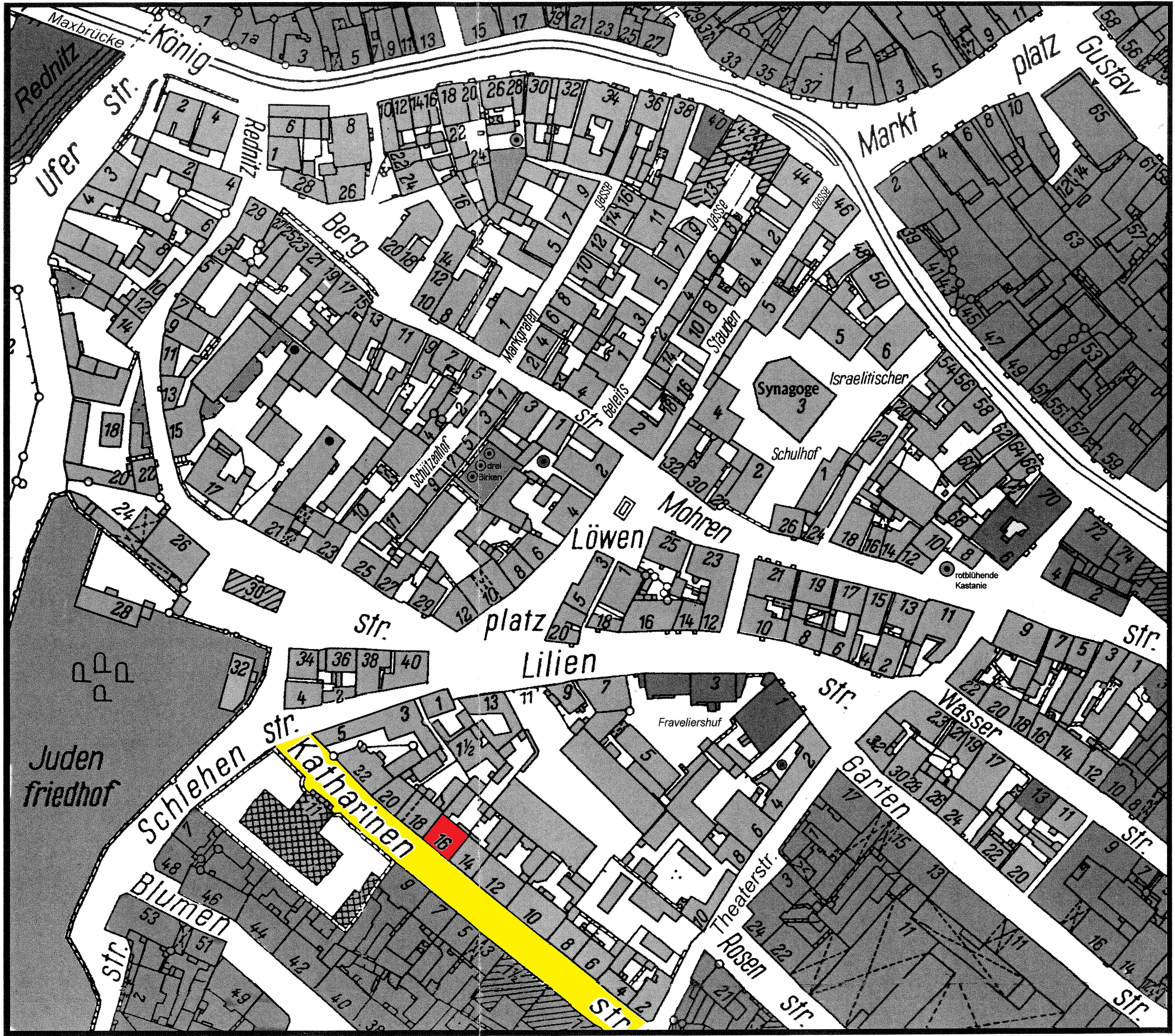 | Beschreibung | Gänsberg-Plan Katharinenstraße 16 rot markiert | ||