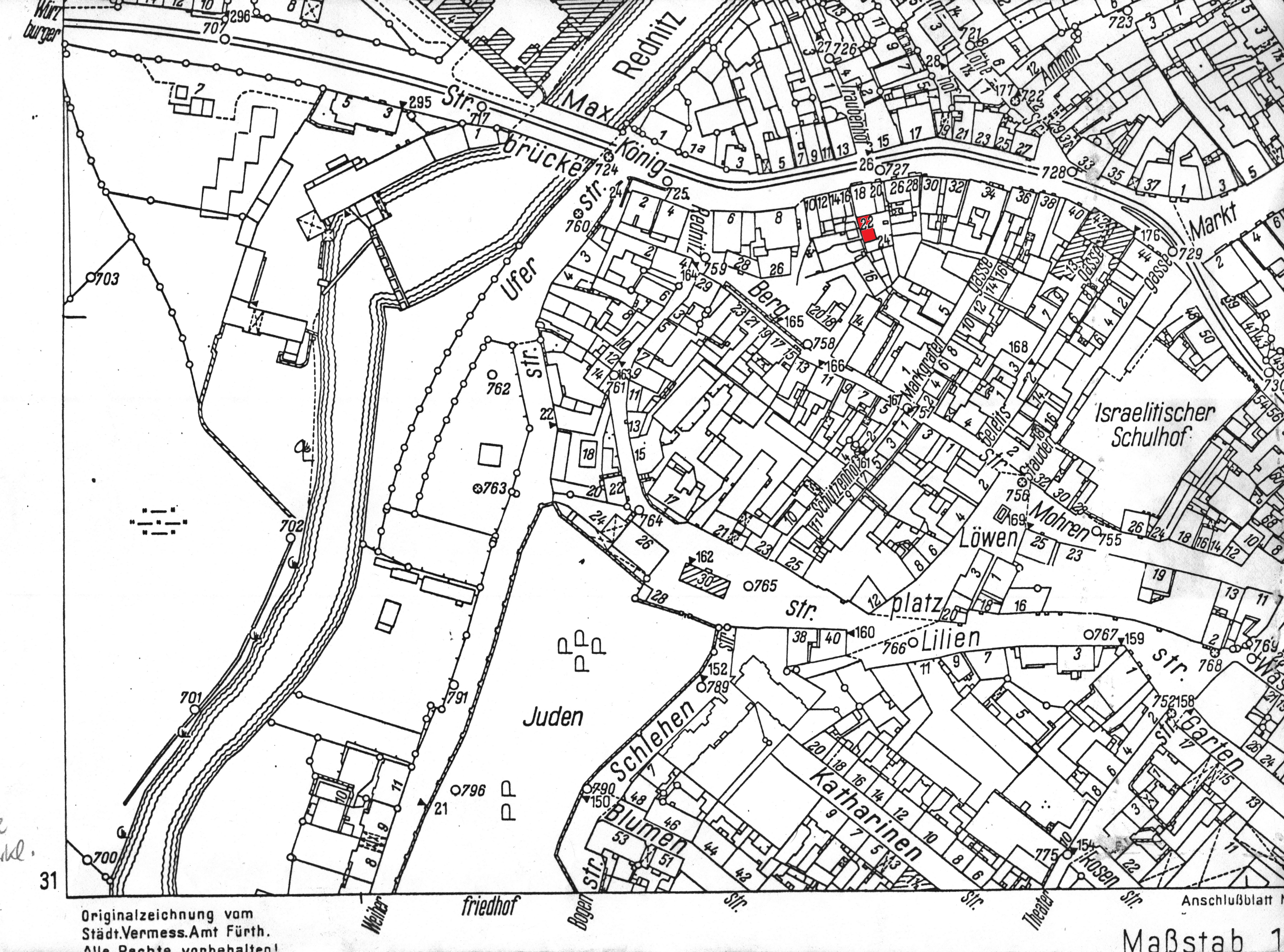 | Beschreibung | Gänsberg-Plan Stadt Fürth; Königstraße 22 rot markiert | ||