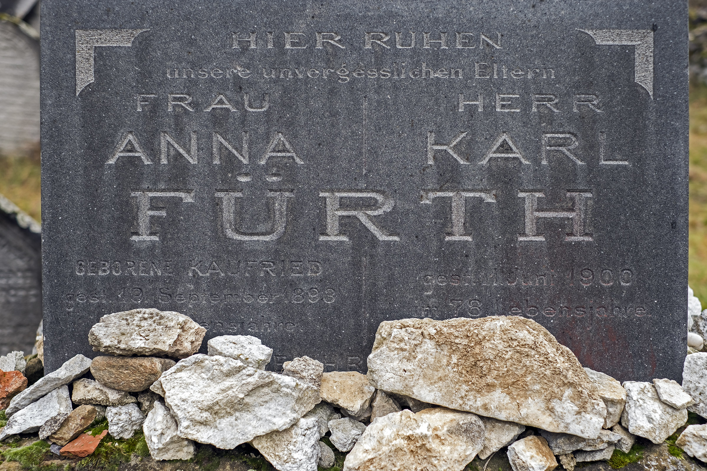 | Beschreibung | Grab von Anna Fürth (geb. Kaufried, gest. 19.09.1893) und Karl Fürth (gest. 11.06.1900) auf dem israelitischen Friedhof in Rabí (deutsch Rabi, früher Raby) in Tschechien. | ||