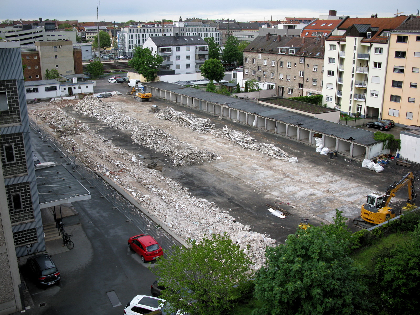 | Beschreibung | Fa. Auto Tetik (links oben im Bild) und Garagenhof in der Karolinenstraße 70 bzw. 72 kurz vor dem Abriss (Mai 2019) | ||