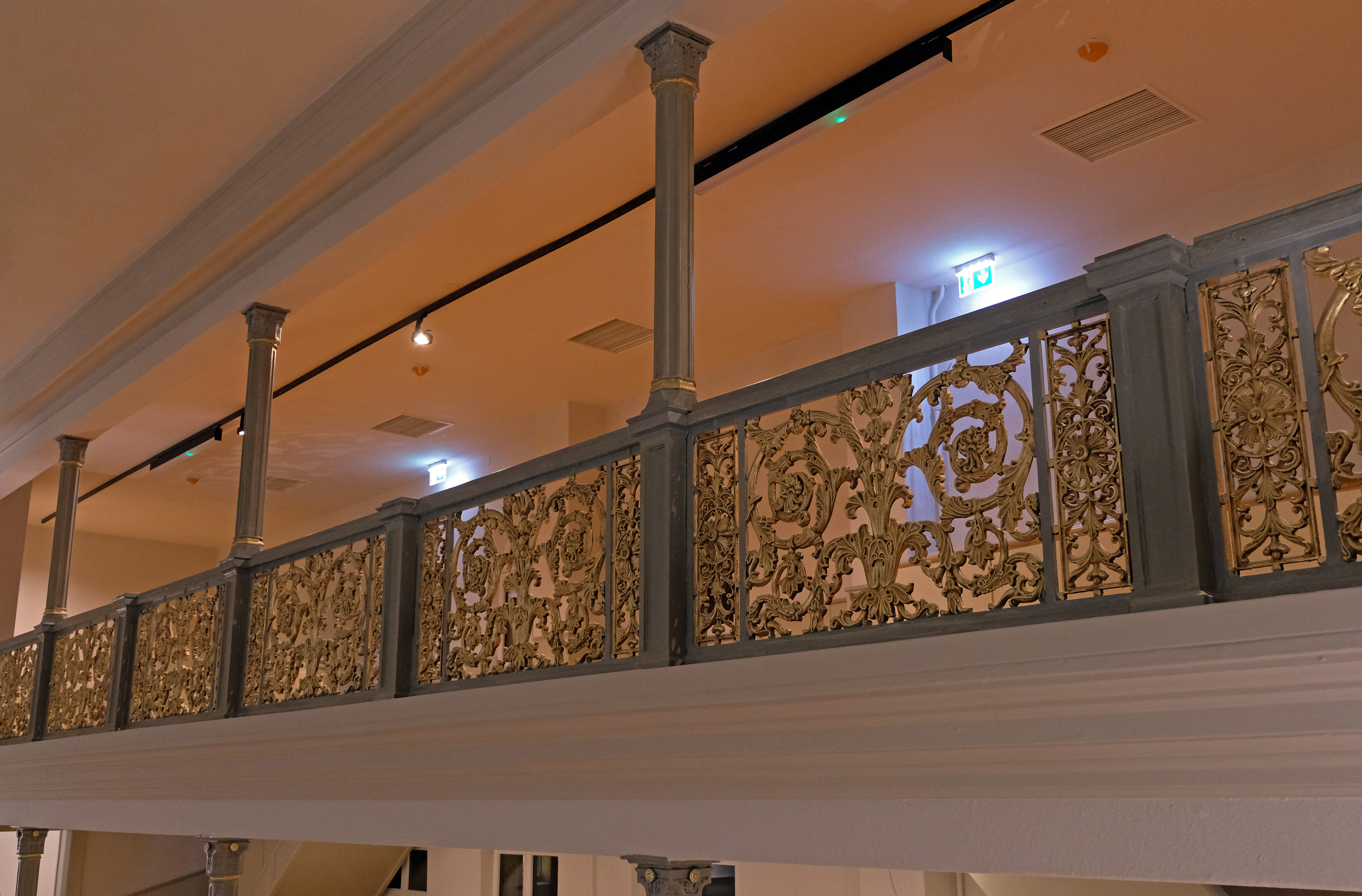 | Dateiinfo (Bild-Unterschrift und Info-Box, automatisch erstellt) | Geländer im Festsaal im Grünen Baum, Feb. 2019 Urheber: Kamran Salimi<br><br>Lizenz: CC BY-SA 3.0 | ||
