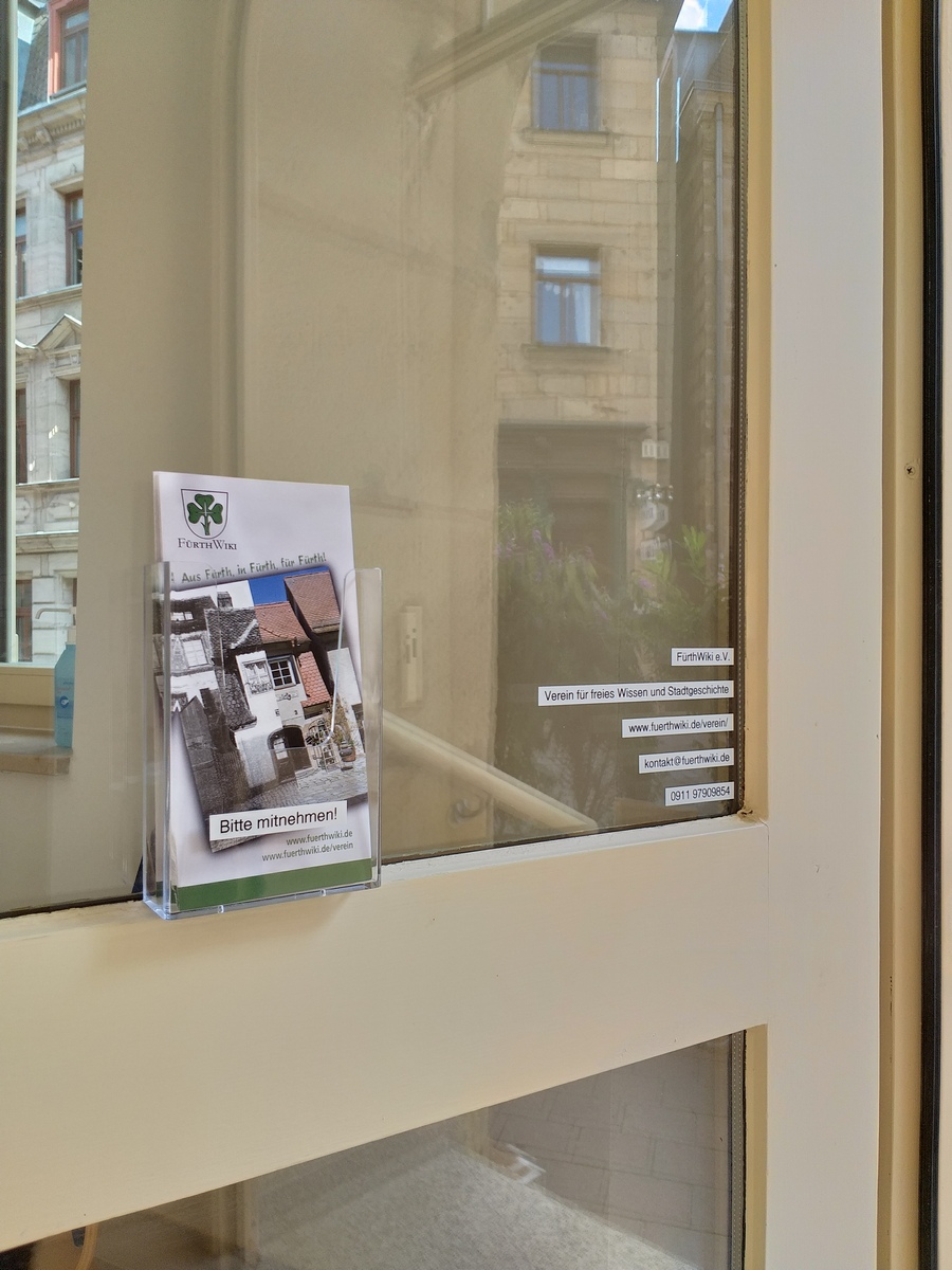 | Beschreibung | FürthWiki-Laden, Prospekthalter und Türbeschriftung | ||