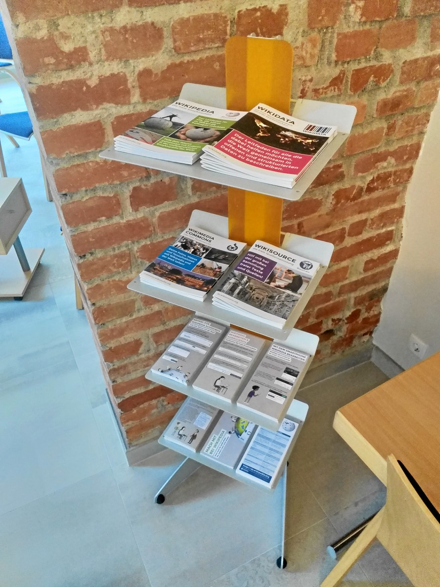 | Beschreibung | FürthWiki-Laden, Prospektständer mit WMDE-Schrifttum zur Selbstbedienung | ||