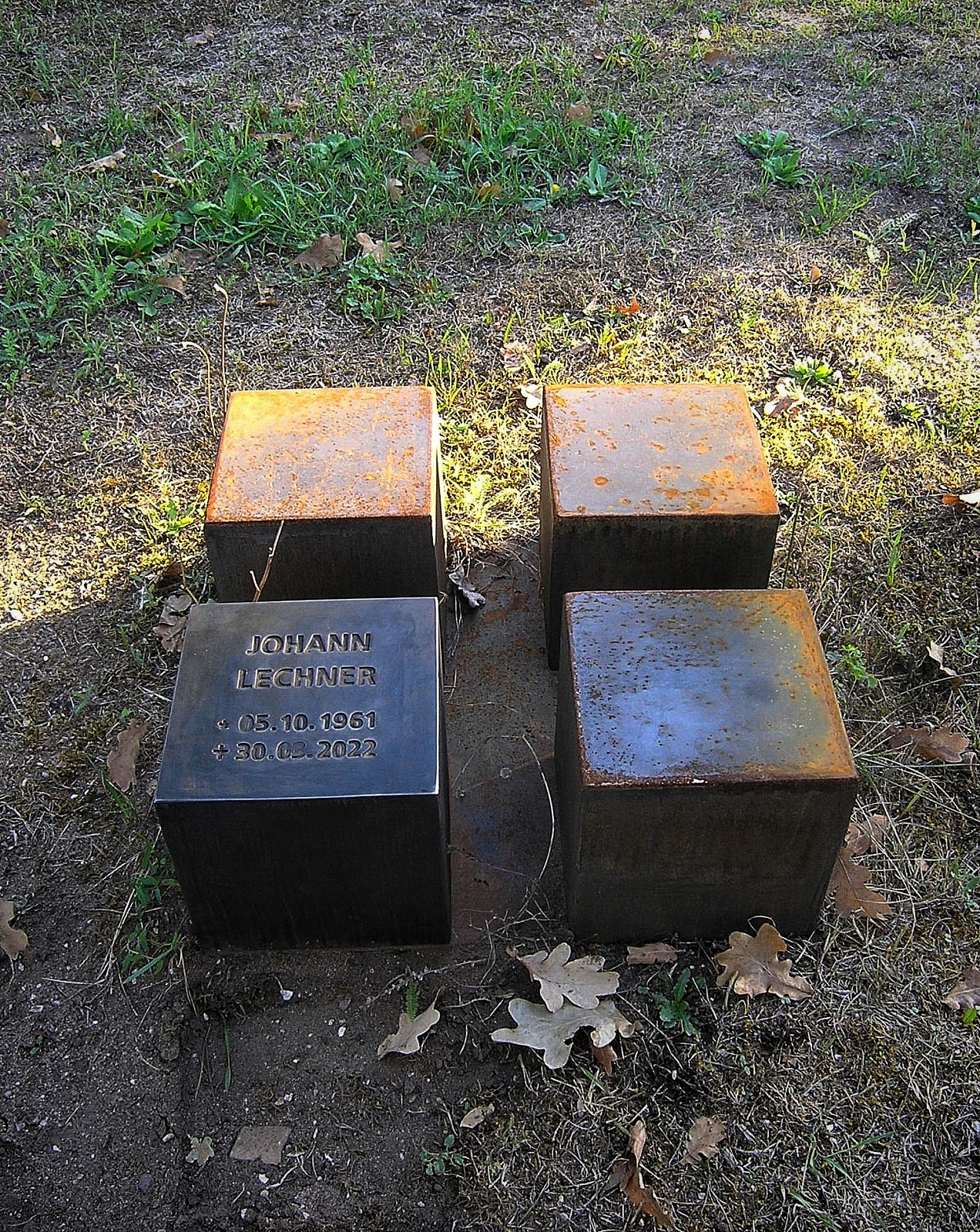 | Beschreibung | Schriftwürfel der Urnengrabanlage auf dem Poppenreuther Friedhof (Juni 2022) | ||