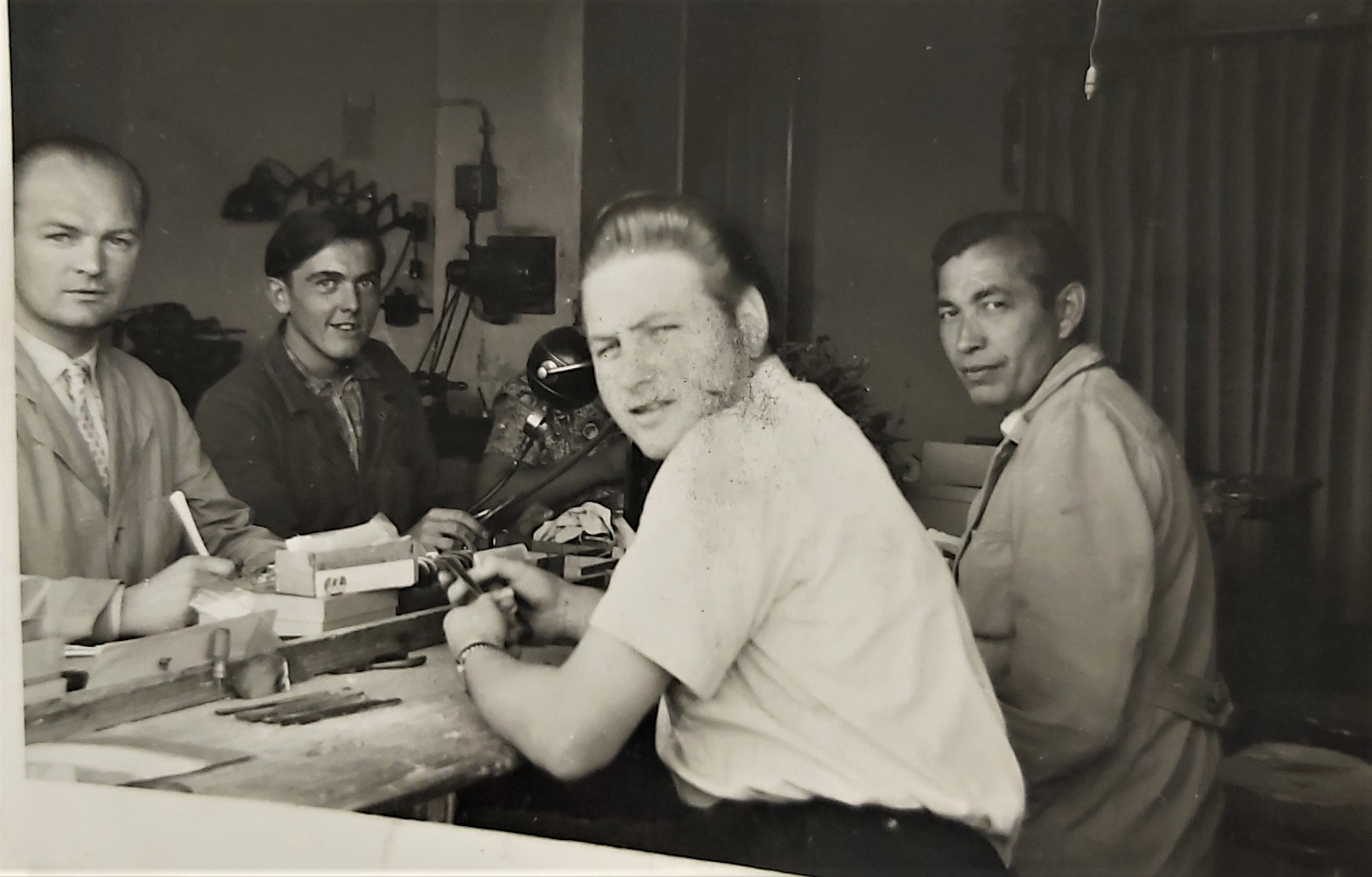 | Beschreibung | Karl Zettner jun., Mitarbeiter, Fritz Zettner, Mitarbeiter (von li.) ca. 1957 | ||