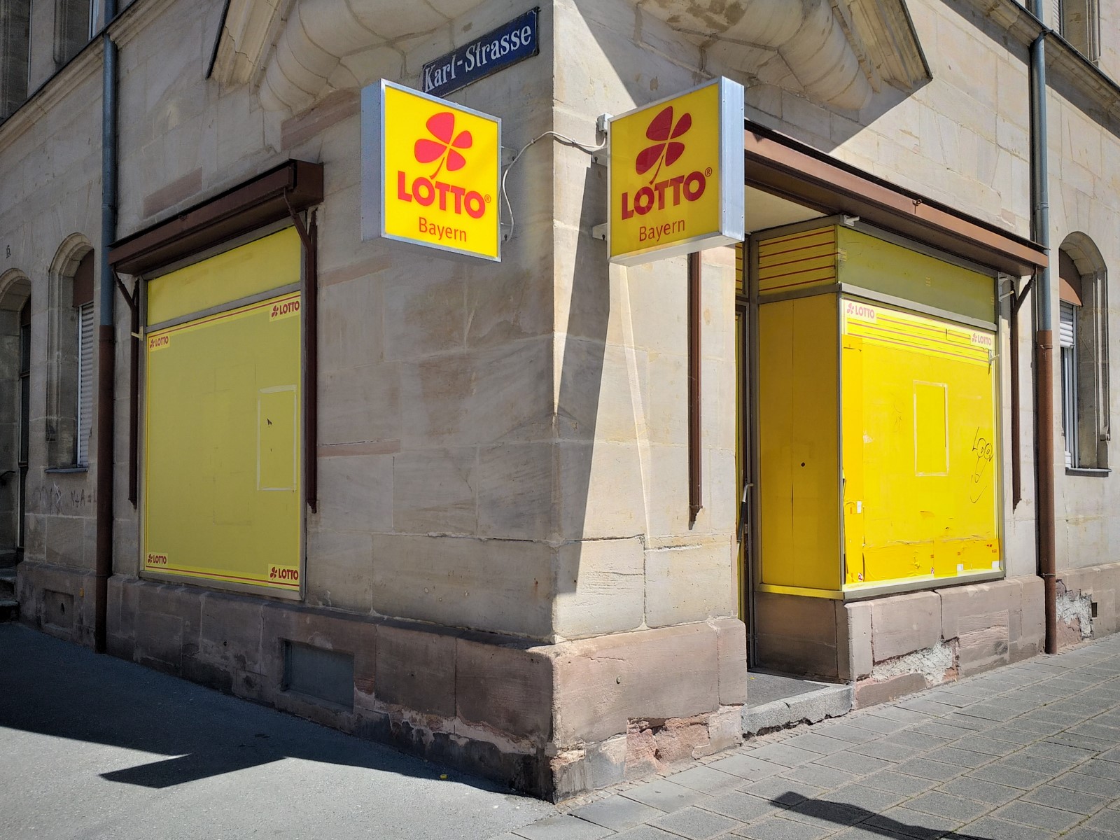 | Beschreibung | Karlstraße 15, Lotto-Laden im EG am Tag seiner Schließung (31. Mai 2023) | ||