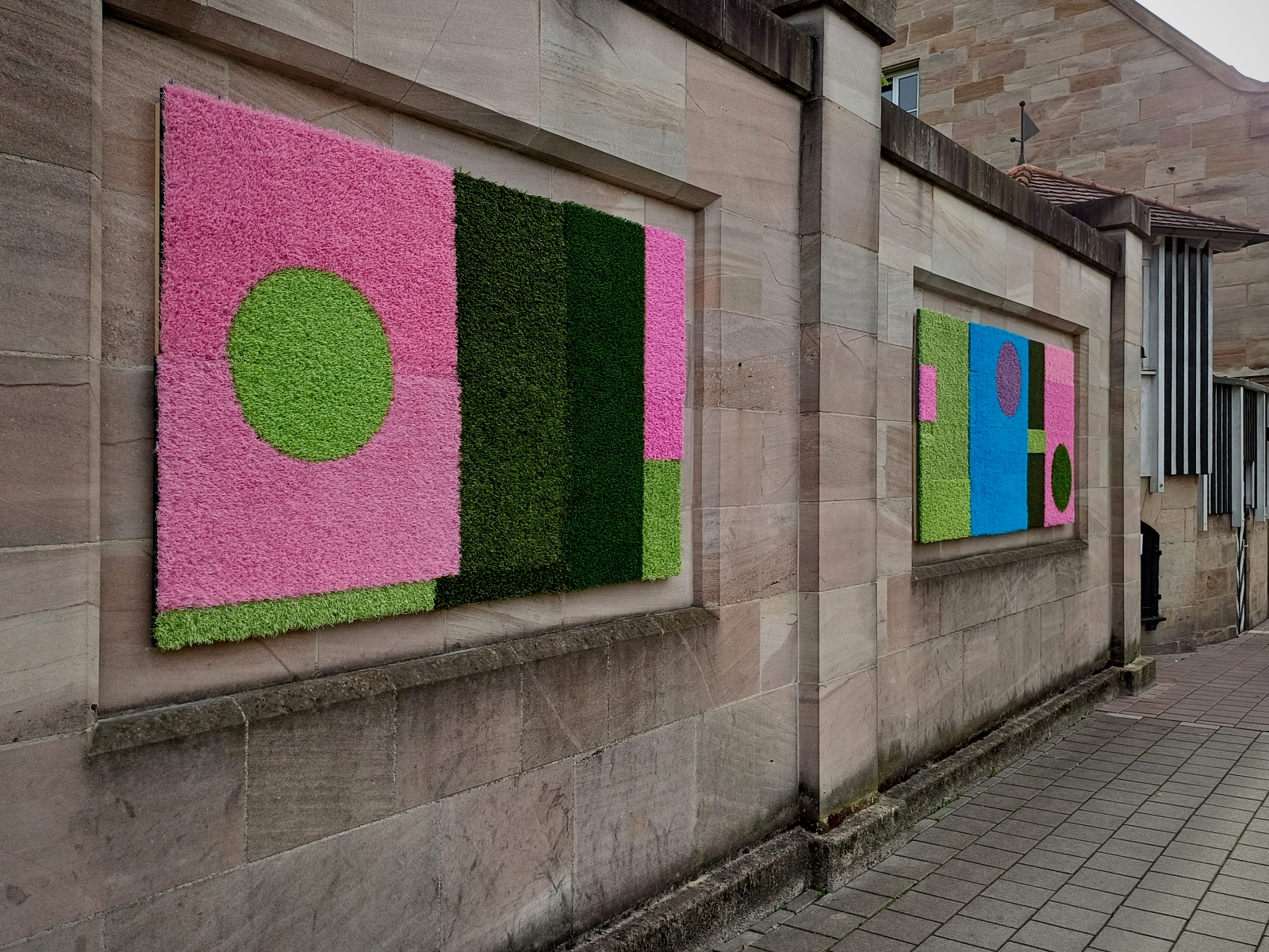 | Beschreibung | Barbara Engelhard: Grasgeflüster (Kunstrasen, Holzplatte) als Teil der Frei Luft Galerie 2024 (Juni 2024) | ||