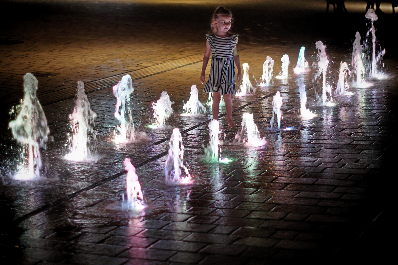 | Dateiinfo (Bild-Unterschrift und Info-Box, automatisch erstellt) | Fontänenfeld in der Fußgängerzone (August 2024) Urheber: Ralph Stenzel<br><br>Lizenz: CC BY-SA 4.0 | ||