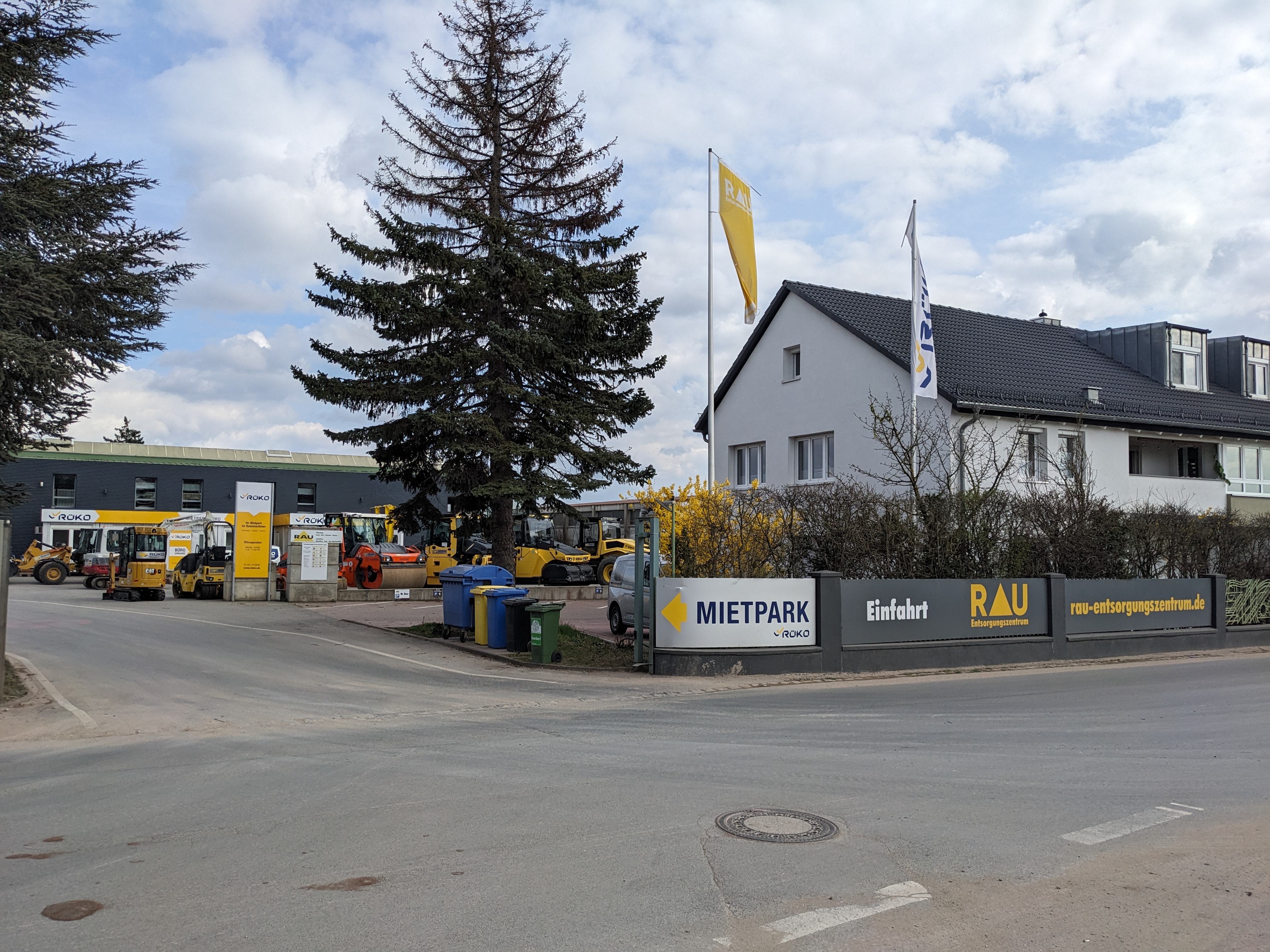 Von links nach rechts sind zu sehen die Firmen RÜKO Baumaschinen und Green Planet. Ferner befindet sich hier auch das Entsorgungszentrum der Firma Rau.