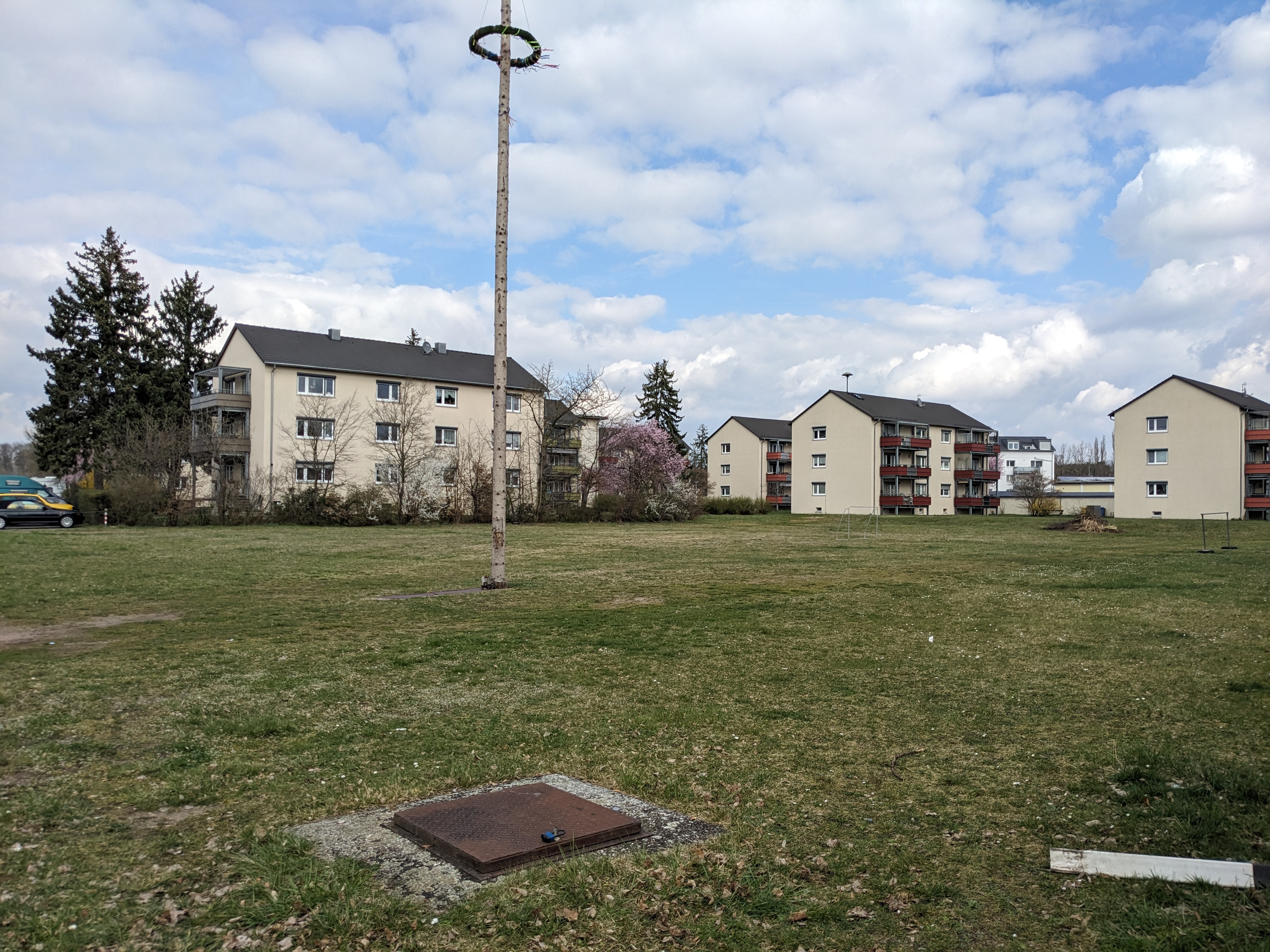Im Hintergrund die Wohnhäuser an der Sportplatzstraße.