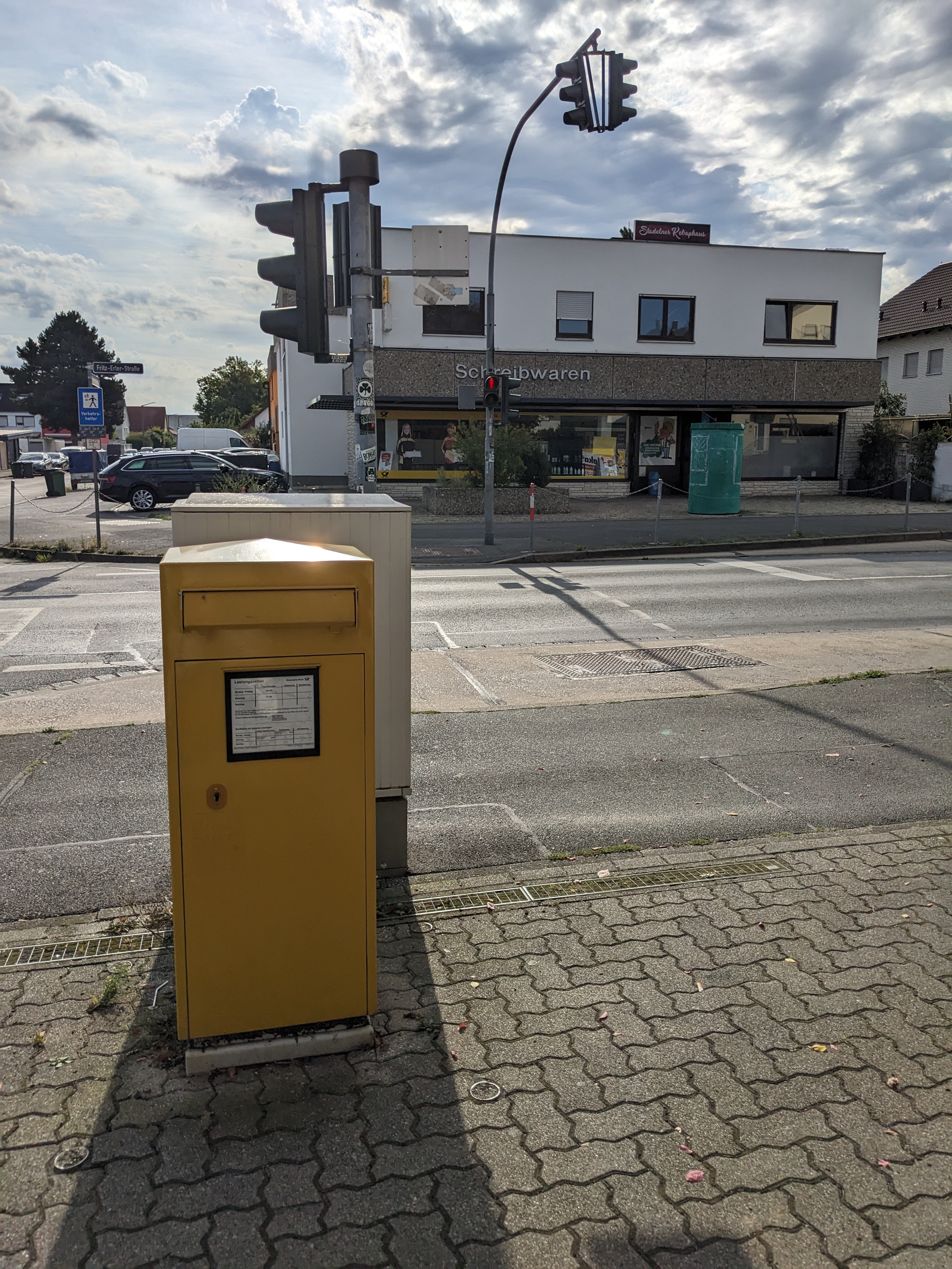 Dahinter der Schreibwarenladen an der Fritz-Erler-Straße.