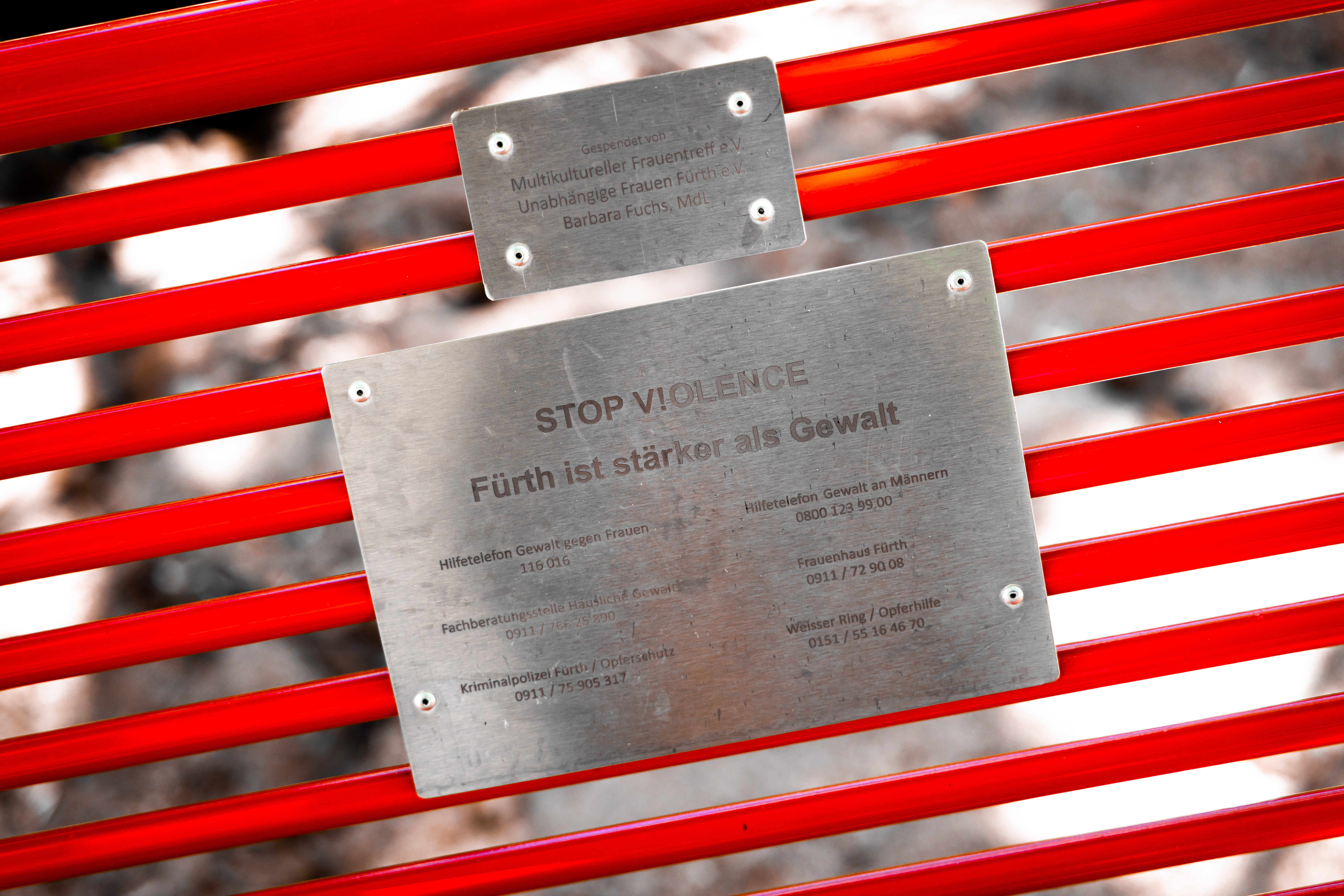 | Dateiinfo (Bild-Unterschrift und Info-Box, automatisch erstellt) | Rote Bank in der Adenaueranlage. Stand 2025 sind 8 an der Zahl im Stadtgebiet aufgestellt. Urheber: Claus W. Vogl<br><br>Lizenz: CC BY-SA 4.0 | ||