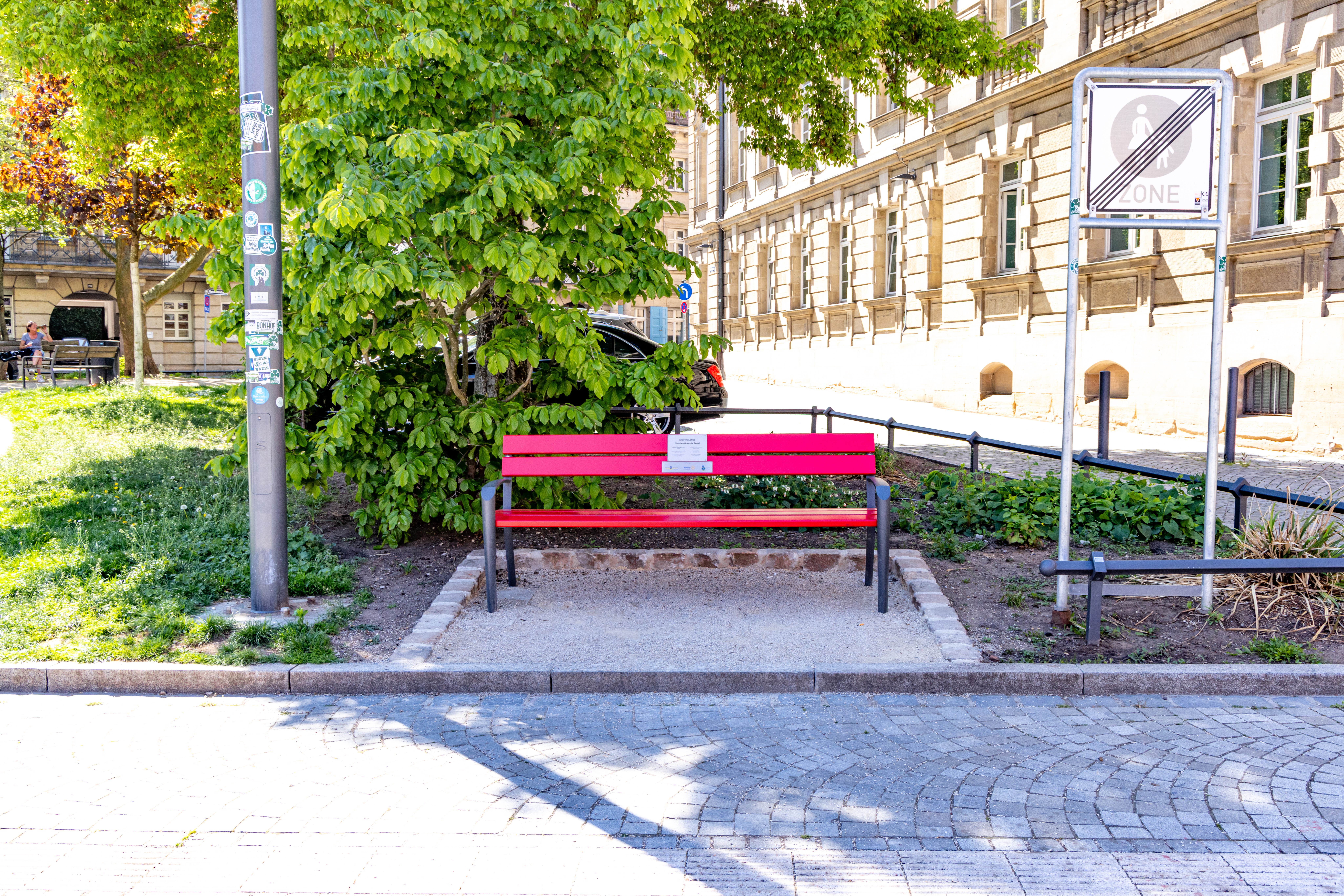 | Beschreibung | Rote Bank am Hallplatz. Stand 2025 sind 8 an der Zahl im Stadtgebiet aufgestellt. | ||