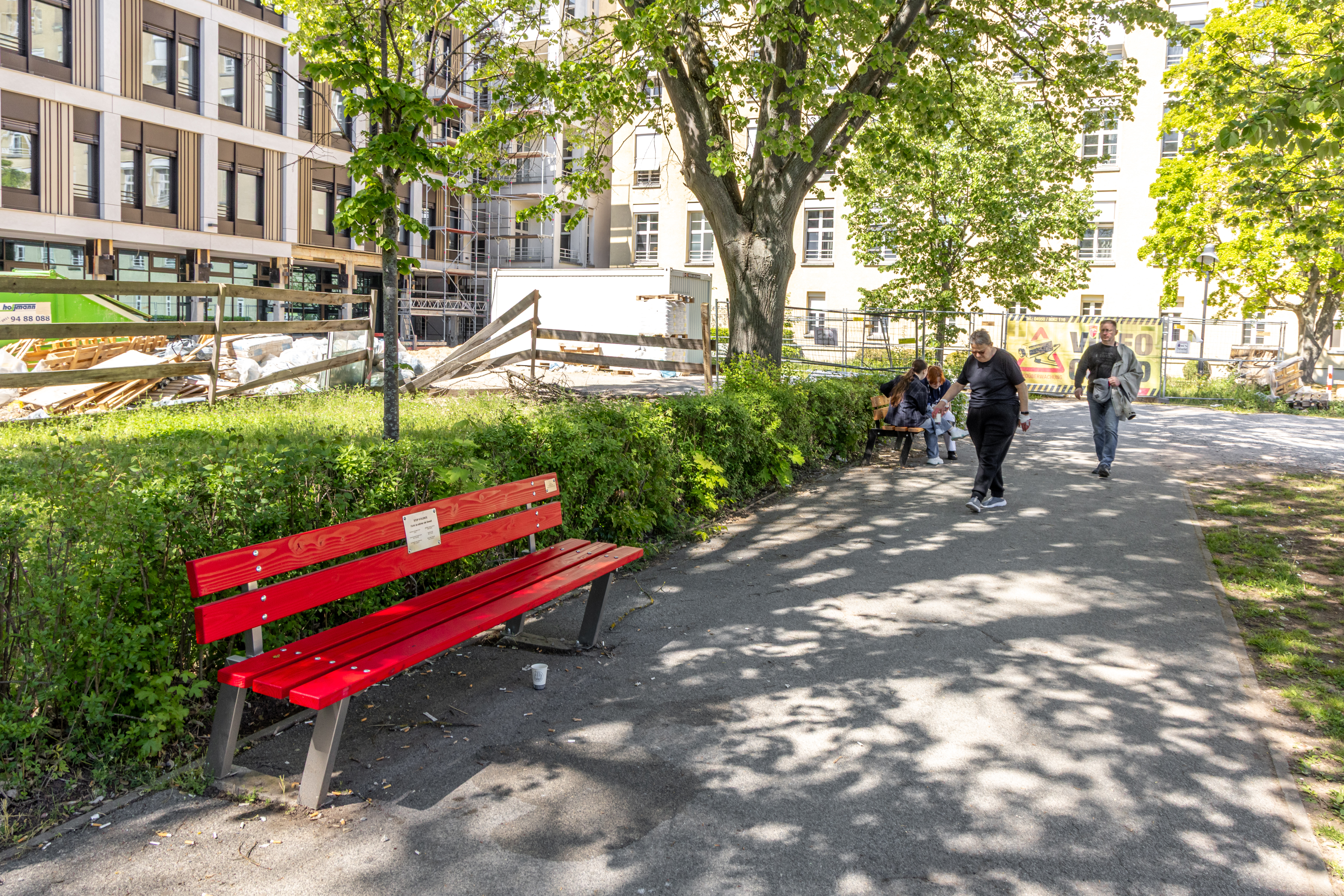 | Dateiinfo (Bild-Unterschrift und Info-Box, automatisch erstellt) | Rote Bank am Klinikum. Stand 2025 sind 8 an der Zahl im Stadtgebiet aufgestellt. Urheber: Claus W. Vogl<br><br>Lizenz: CC BY-SA 4.0 | ||